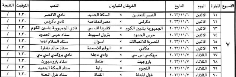 أبرزها غزل المحلة ضد القناة، مواعيد الجولة السابعة لدوري المحترفين