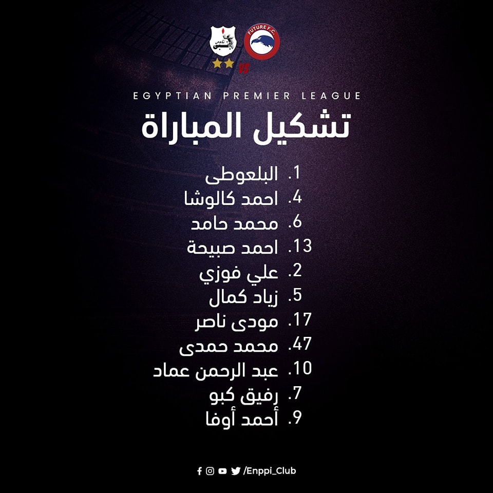 وضم تشكيل إنبي في مواجهة فيوتشر ببطولة الدوري المصري كلا من: