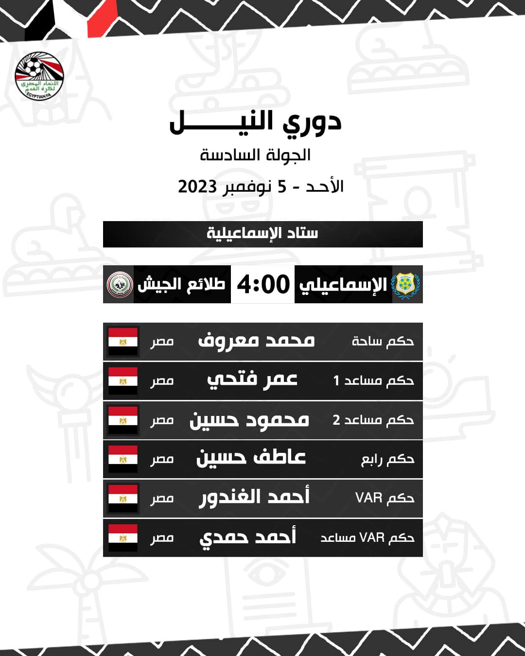 حكام مباراة الاسماعيلي وطلائع الجيش