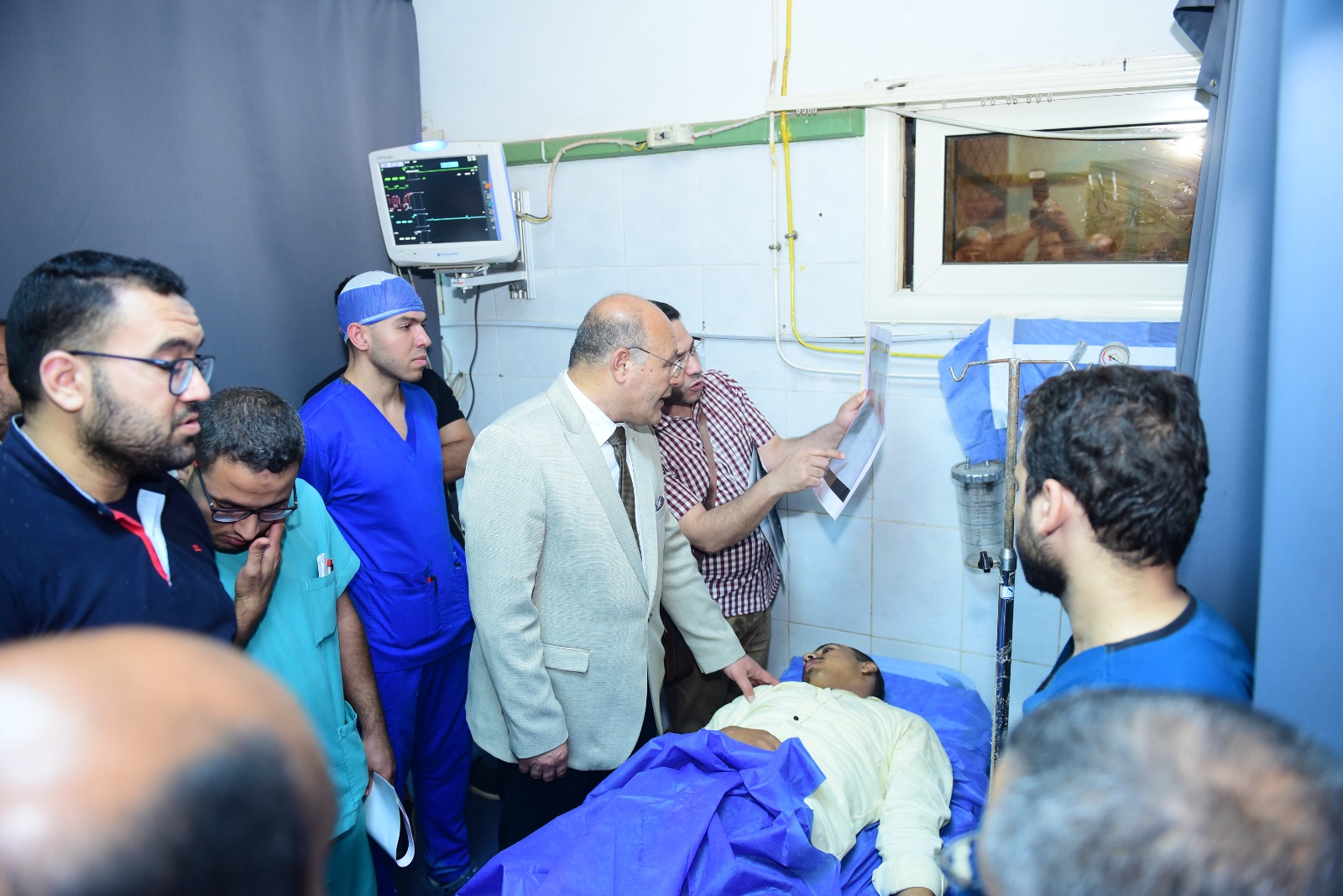 رئيس جامعة سوهاج يطمئن على الوضع الصحي للطلاب للمصابين خلال حادث