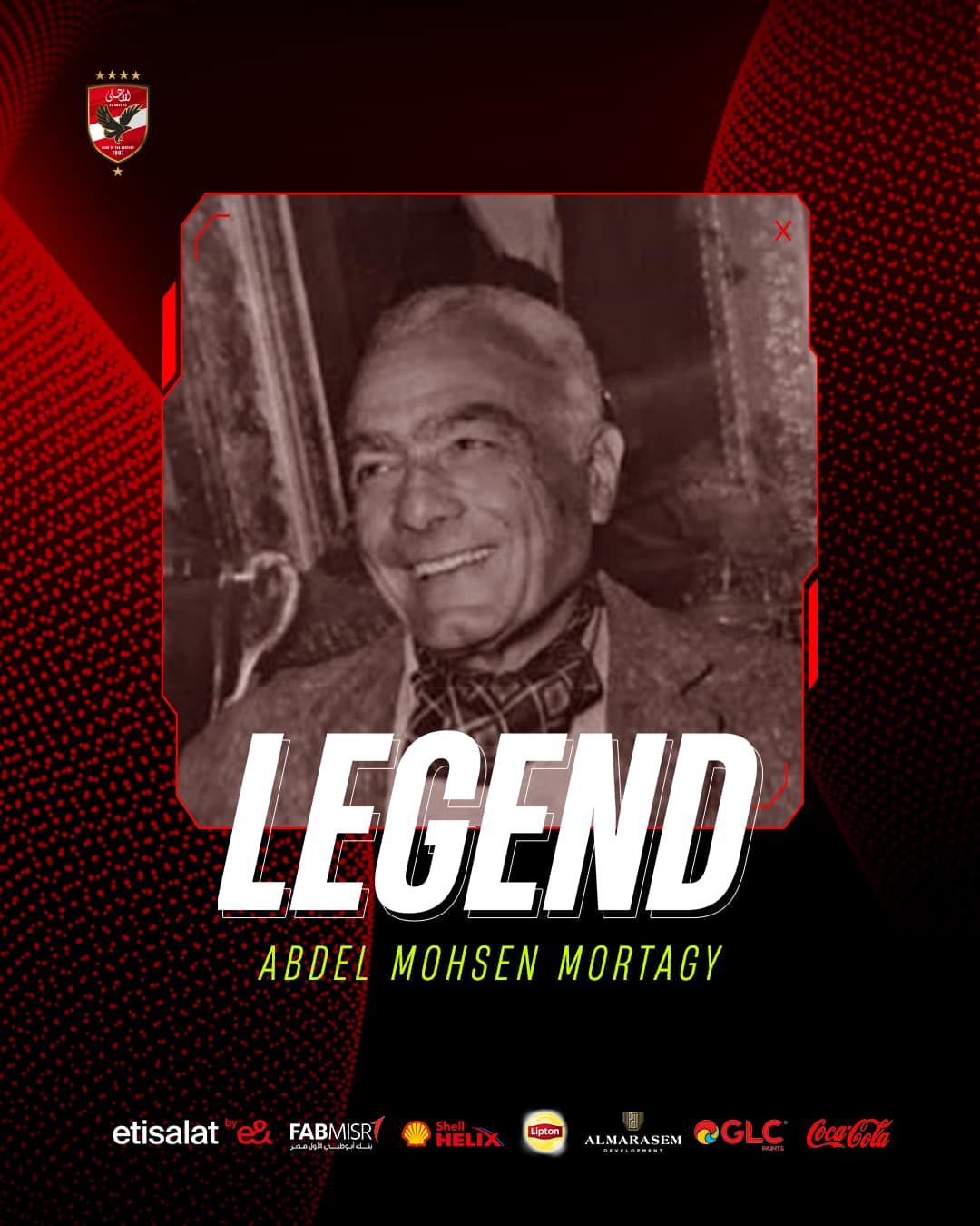 نشرت الصفحة الرسمية للنادي الأهلي عبر موقع التواصل الاجتماعي فيس بوك منشورا لإحياء ذكرى رحيل الراحل الفريق عبدالمحسن مرتجي رئيس النادي سابقا في فترة الستينات والسبعينات قائلة: “تحل اليوم الذكرى السنوية لرحيل أحد الأساطير الإدارية في تاريخ النادي.. رحم الله الفريق مرتجي”.