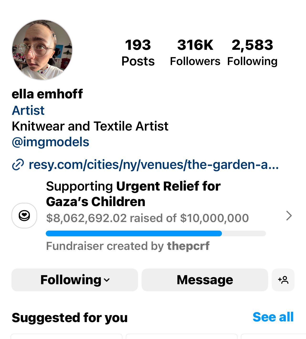 وبحسب صحيفة “نيويورك بوست”، فإن إيلا إيمهوف (24 عامًا) عارضة الأزياء الأمريكية، وابنة دوج إيمهوف، زوج كامالا هاريس، أطلقت حملة لجمع التبرعات لدعم الإغاثة العاجلة لأطفال غزة عبر حسابها الشخصي علي موقع الصور الشهير “إنستجرام”، الذي يتابعه أكثر من 300 ألف شخص.