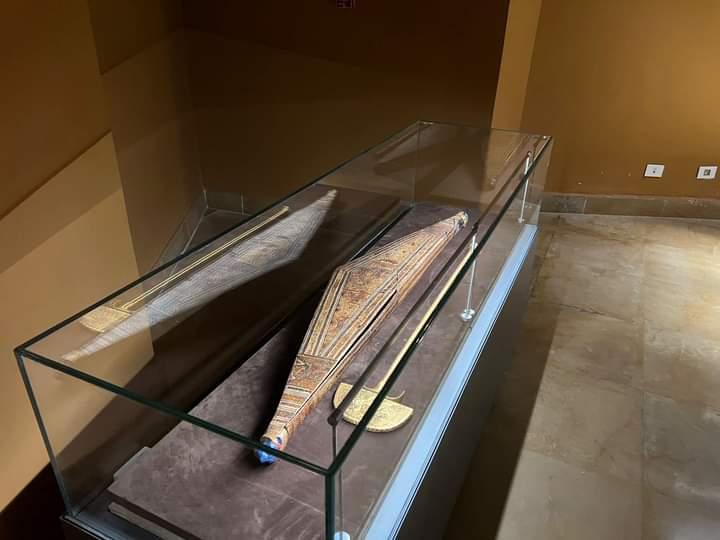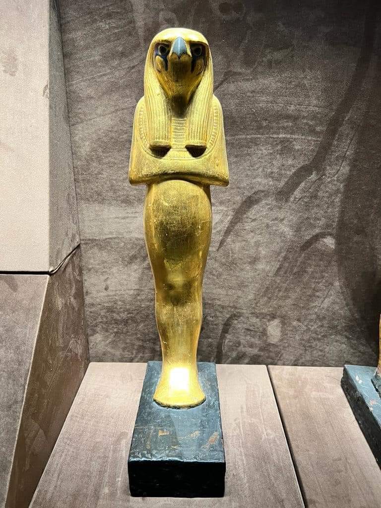 كما يعرض المتحف تمثال من الخشب المغطى بالذهب لحورس على شكل مومياء برأس صقر على قاعدة خشبية، وكان "حور" ابن أوزير وإيزيس راعيًا للملكية وحاميًا للملك في العالم الآخر.