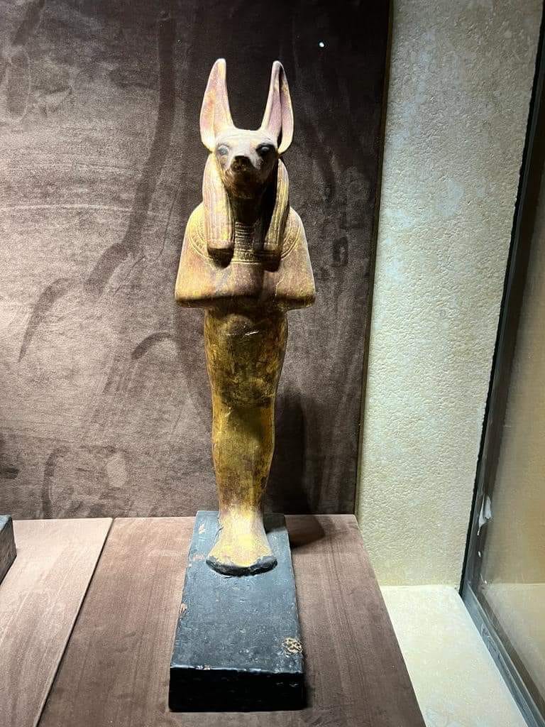 ويعرض المتحف أيضا تمثال من الخشب المغطى بالذهب لأنوبيس على هيئة مومياء برأس ابن أوى على قاعدة خشبية وكان أنوبيس حاميًا للمقابر ومسؤولًا عن التحنيط.