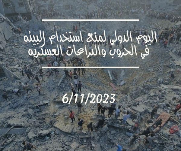 احتفل العالم أمس باليوم العالمي لمنع استخدام البيئة في الحروب والصراعات العسكرية، والذي يصادف السادس من نوفمبر من كل عام، في الوقت الذي يشن الاحتلال الإسرائيلي عدوانه على أبناء الشعب الفلسطيني في قطاع غزة والضفة الغربية والقدس منذ السابع من أكتوبر 2023 م، واستخدامه المتواصل لكافة أنواع الأسلحة والقذائف التي تستهدف كافة المكونات البيئية وعلى رأسها الإنسان الفلسطيني مسببة أضرار بيئية جسيمة على المدى القصير والبعيد تهدد حياة الإنسان والكائنات الحية.