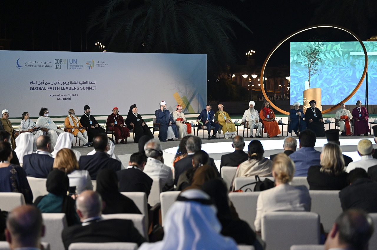 وانطلقت في العاصمة الإماراتية أبوظبي فعاليات القمة العالمية لقادة وزعماء الأديان التي ينظِّمها مجلس حكماء المسلمين بالتعاون مع رئاسة مؤتمر الأطراف COP28 وبرنامج الأمم المتحدة للبيئة والكنيسة الكاثوليكيَّة ووزارة التسامح والتعايش بدولة الإمارات العربية المتحدة، بمشاركة عددٍ كبيرٍ من قادة ورموز الأديان والأكاديميين وخبراء البيئة، بحضور ممثلين عن السكان الأصليين والشباب والمرأة؛ وذلك بهدف بلورة رؤيةٍ مشتركةٍ لقادة الأديان وزعمائها نحو قضية التغير المناخي.