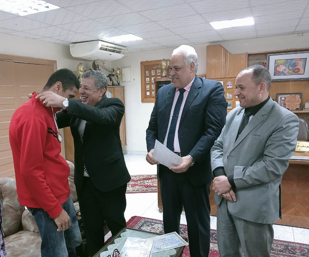 كما قام وكيل الوزارة بالبحيرة، بتكريم فريق الصم وضعاف السمع لمدارس التربية الخاصة الحاصل على المركز الأول على مستوى الجمهورية في بطولة الكرة الخماسية والتى أقيمت بمدينة الأقصر، والذين أهدوا بدورهم كأس البطولة والميدالية لوكيل الوزارة تقديرا لدوره البارز في تقديم كافة التيسيرات والدعم الكبير لهم.