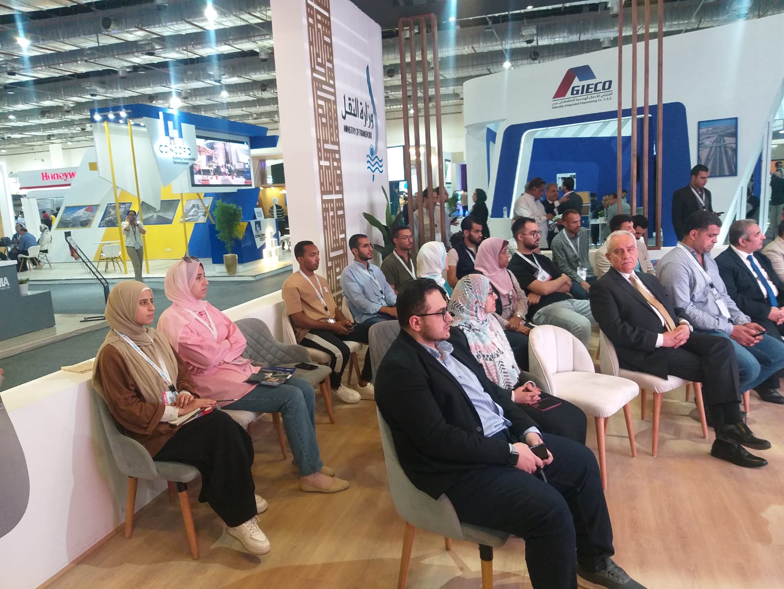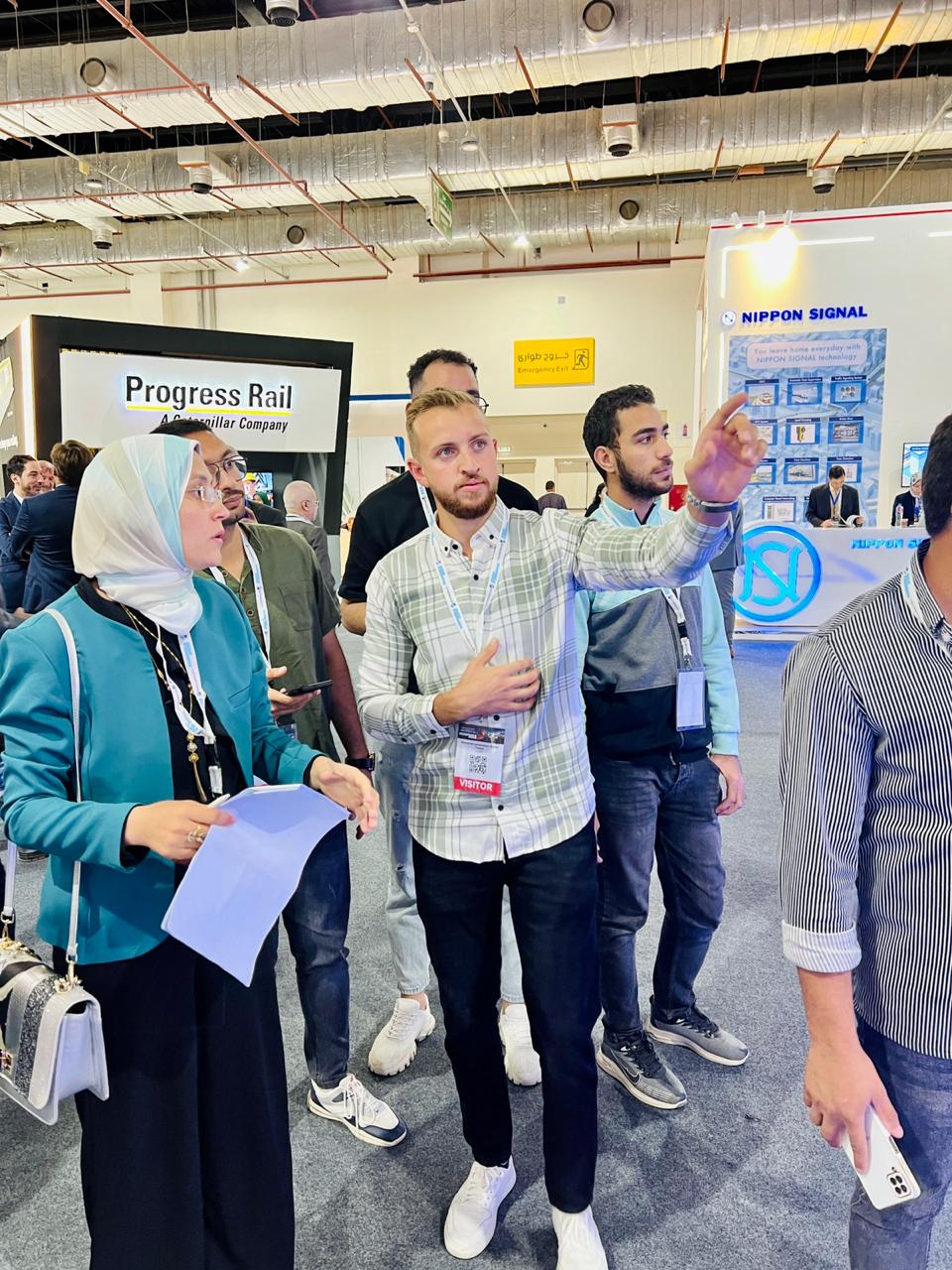 وكان في استقبال وفد الطلاب المهندس عبدالوهاب محمود مستشار وزير النقل لتكنولوجيا المعلومات، والمهندس محمد سمير من مكتب مستشار وزير النقل لتكنولوجيا المعلومات، والذي رافق الوفد للتعرف على أهم أجنحة المعرض، ومجهودات وزارة النقل في توطين صناعة النقل الحديث، من عربات قطارات السكك الحديدية، وأتوبيسات النقل الكهربائية والتي تم صناعتها بالمصانع والأيدي المصرية.