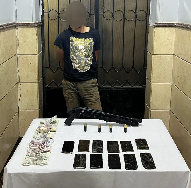 و ضبط (عاطل "له معلومات جنائية" ) بدائرة مركز شرطة دراو بأسوان.. وبحوزته ( كيلو جرام من مخدر الحشيش – 3 كيلو جرام من مخدر البانجو – عدد من أقراص التامول المخدر – بندقية خرطوش – عدد من الطلقات النارية– طبنجة – 2 سلاح أبيض).