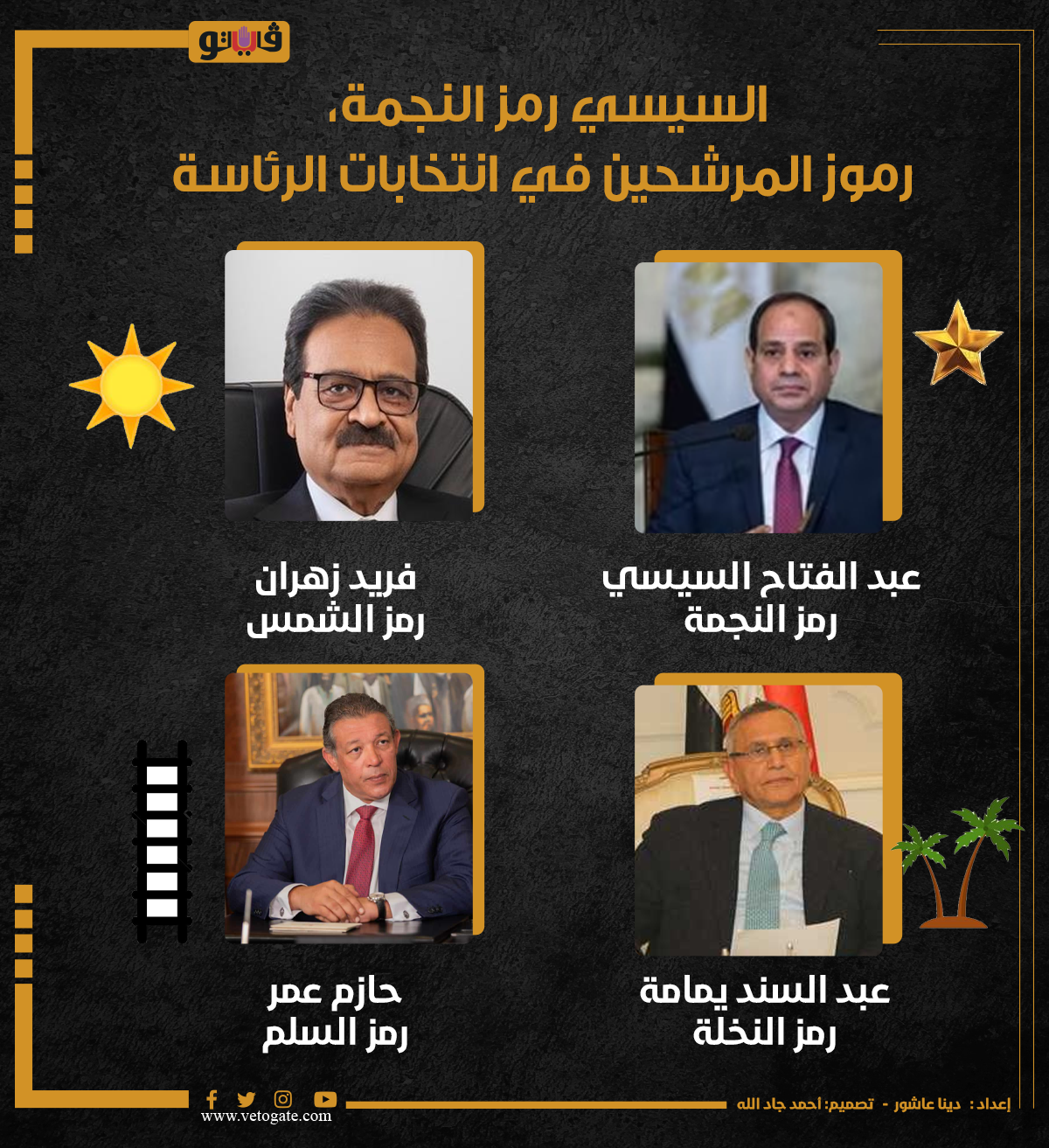 السيسي رمز النجمة، رموز المرشحين في انتخابات الرئاسة (إنفوجراف) الأربعاء 08/نوفمبر/2023 - 06:09 م 11/8/2023 6:09:46 PM دينا عاشور شارك طباعة 18 حجم الخط شارك طباعة وز المرشحين في انتخابات الرئاسة انتخابات الرئاسة السيسي عبد الفتاح السيسي عبد الفتاح السيسي رمز النجمة فريد زهران رمز الشمس عبد السند يمامة رمز النخلة حازم عمر رمز السلم حازم عمر عبد السند يمامة فريد زهران