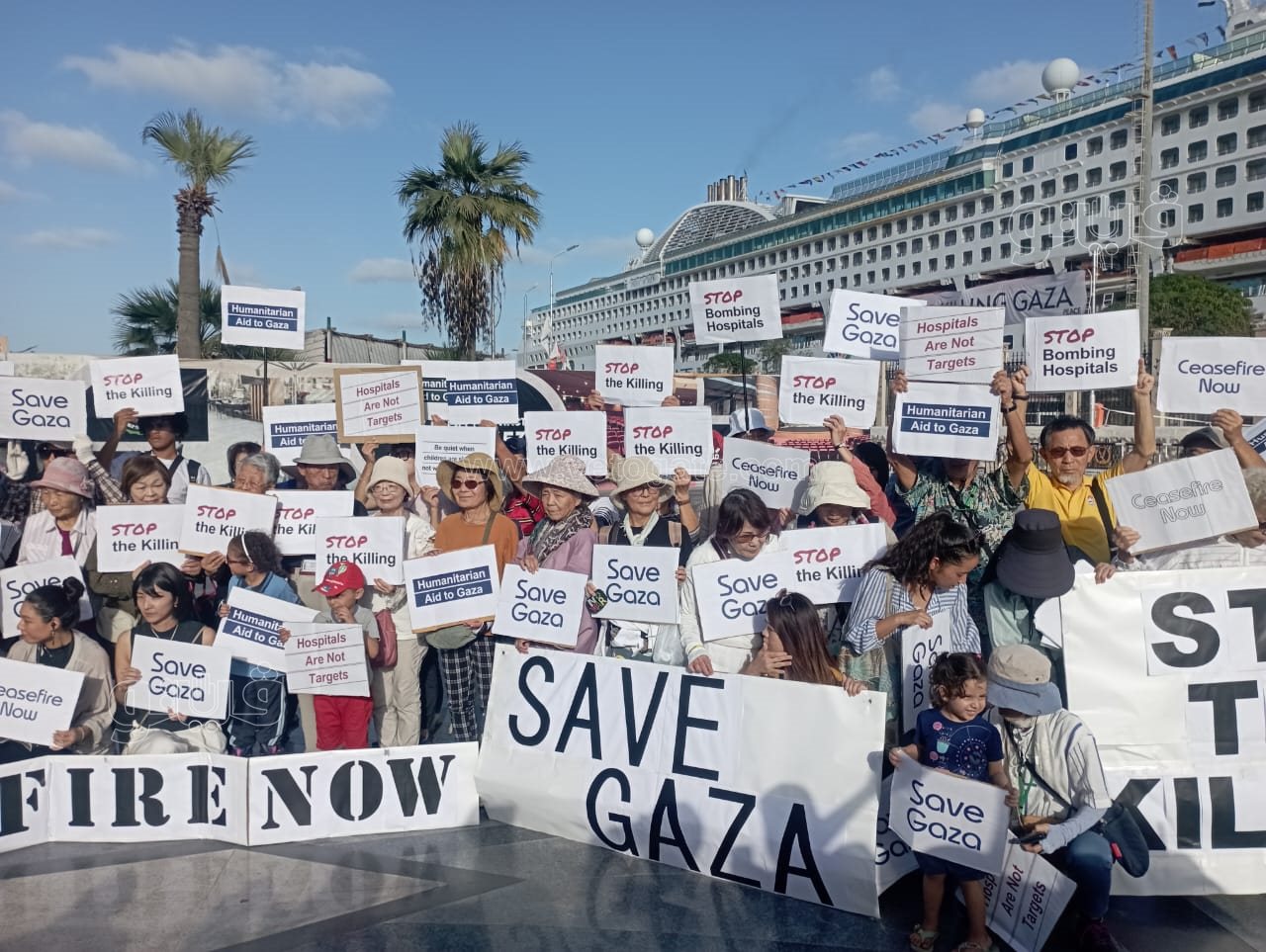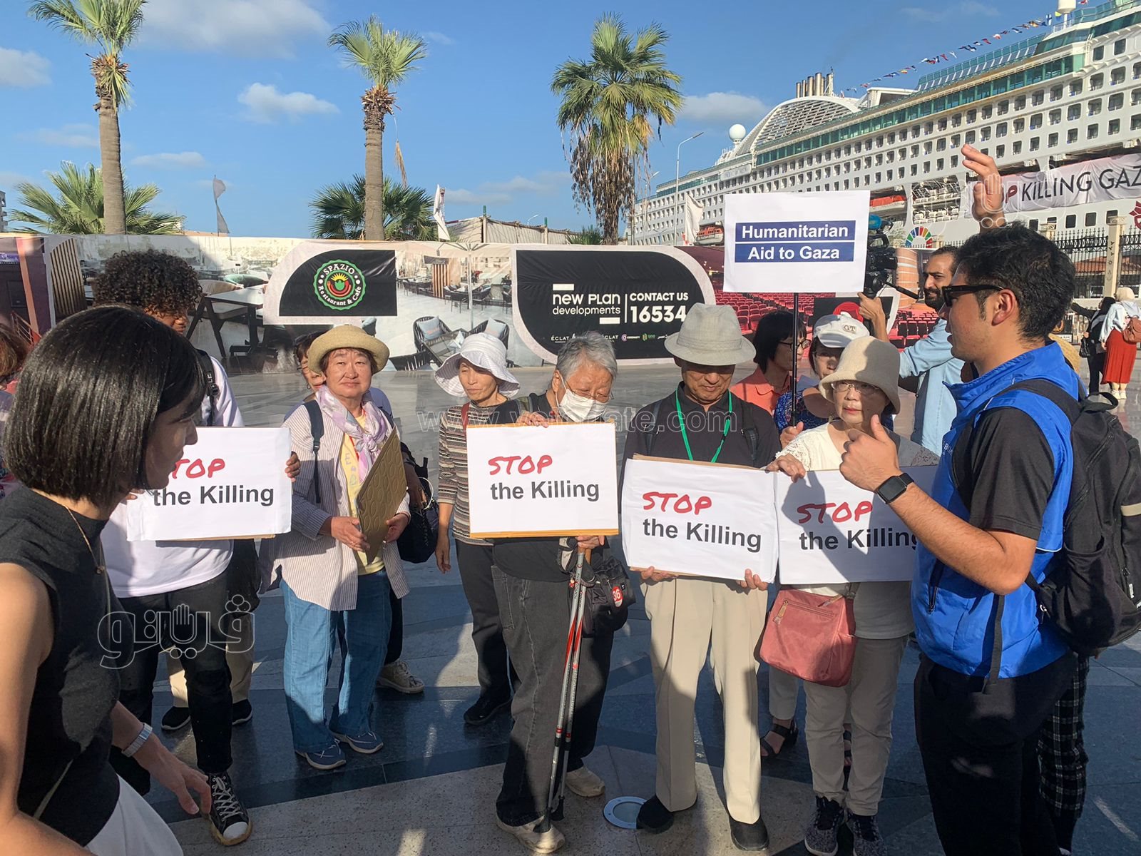 اوقفوا العدوان على غزة، قارب السلام الياباني يصل بورسعيد وعلي متنه 1800 ناشط (صور )