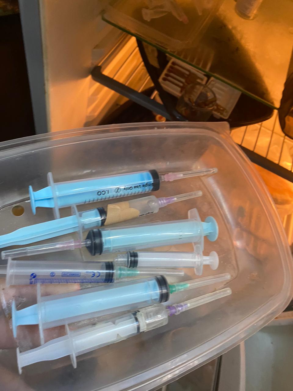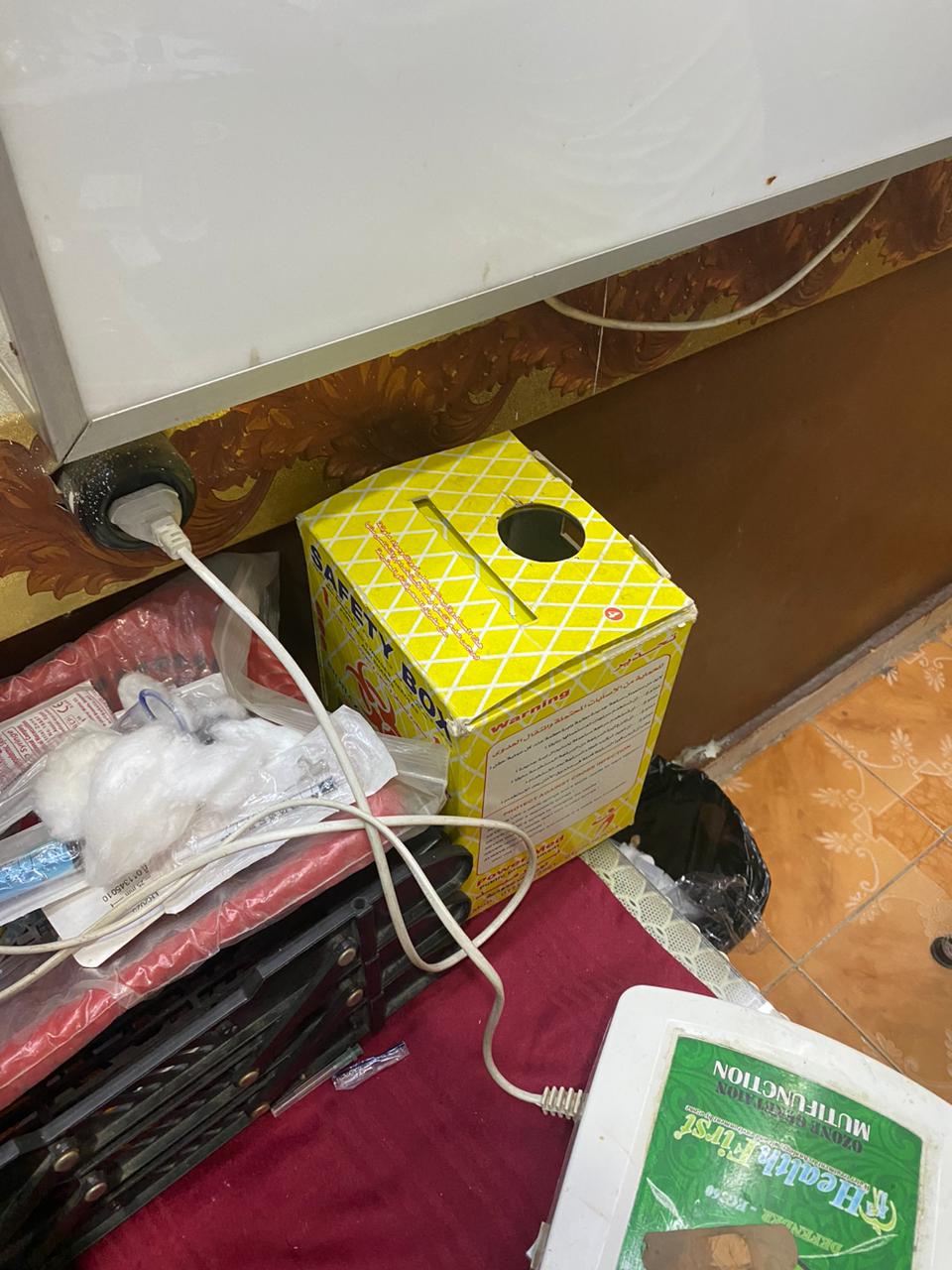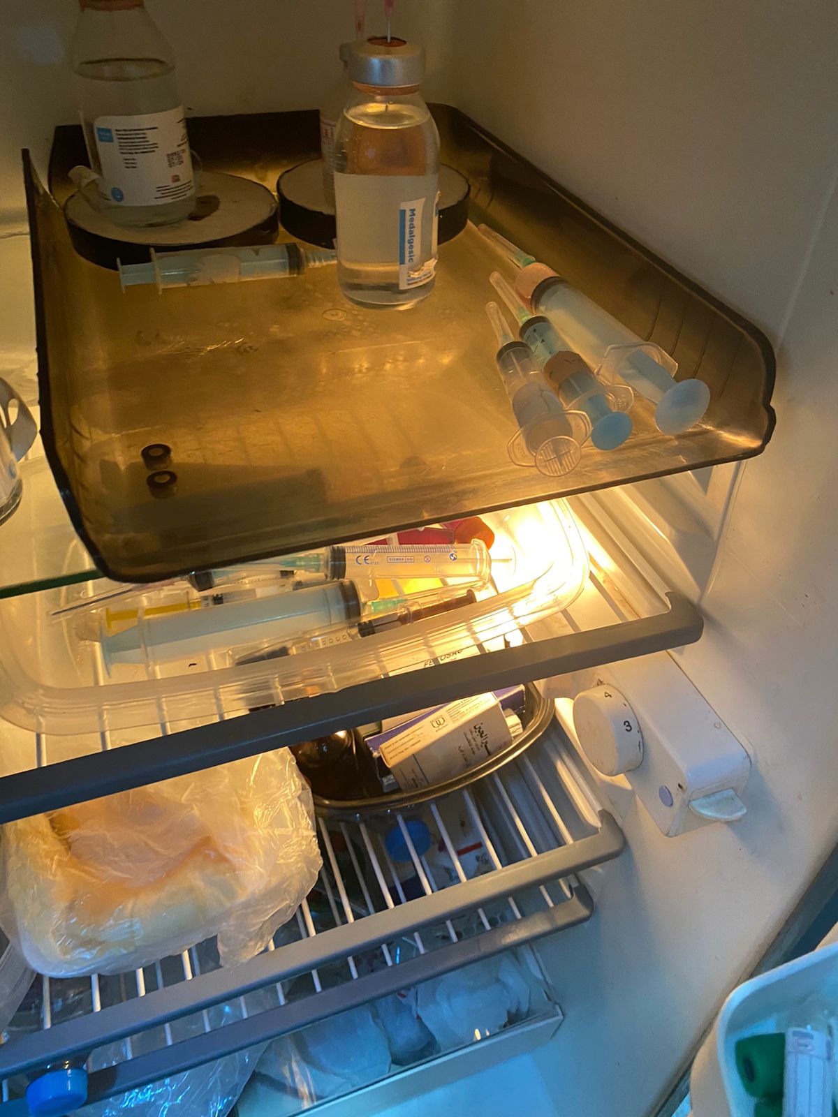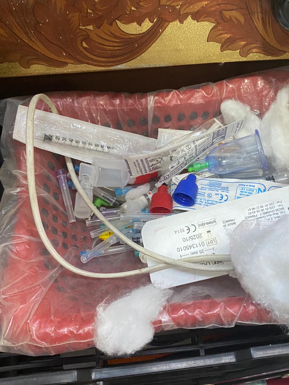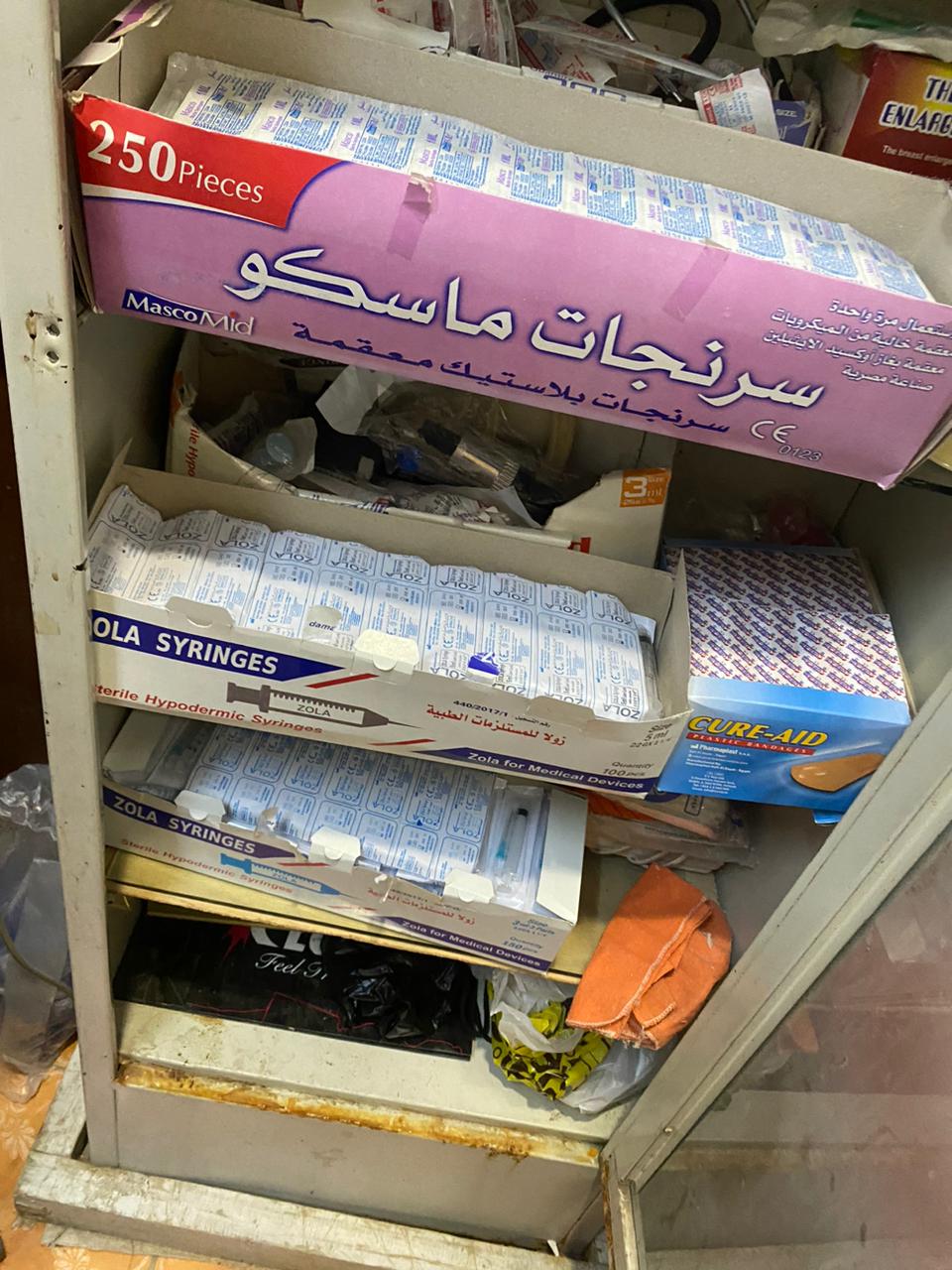 بالإضافة إلى مخالفة عدم اتباع سياسة مكافحة العدوى، وذلك بالمخالفة لقانون رقم 4 لسنة 1994 ومخالفة وجود كمية من سرنجات الدواء مجهزة ومحضرة ولايوجد بها بيانات، كما تم التحفظ على مجموعة من أمبولات الأدوية منتهية الصلاحية، وذلك بالتعاون مع هيئة الدواء.