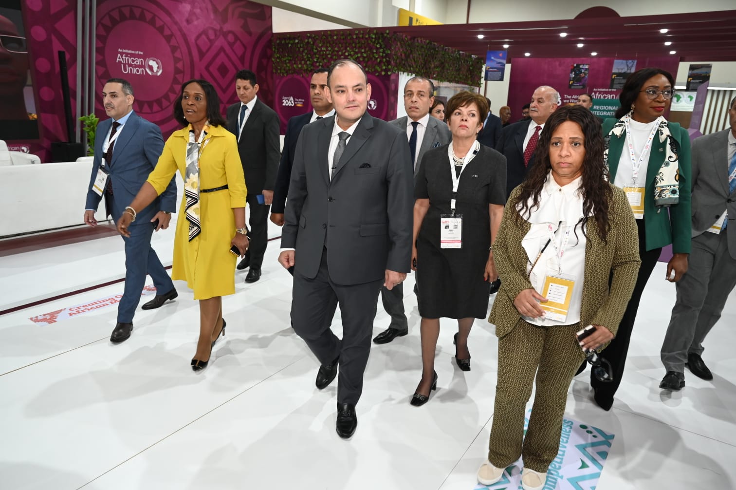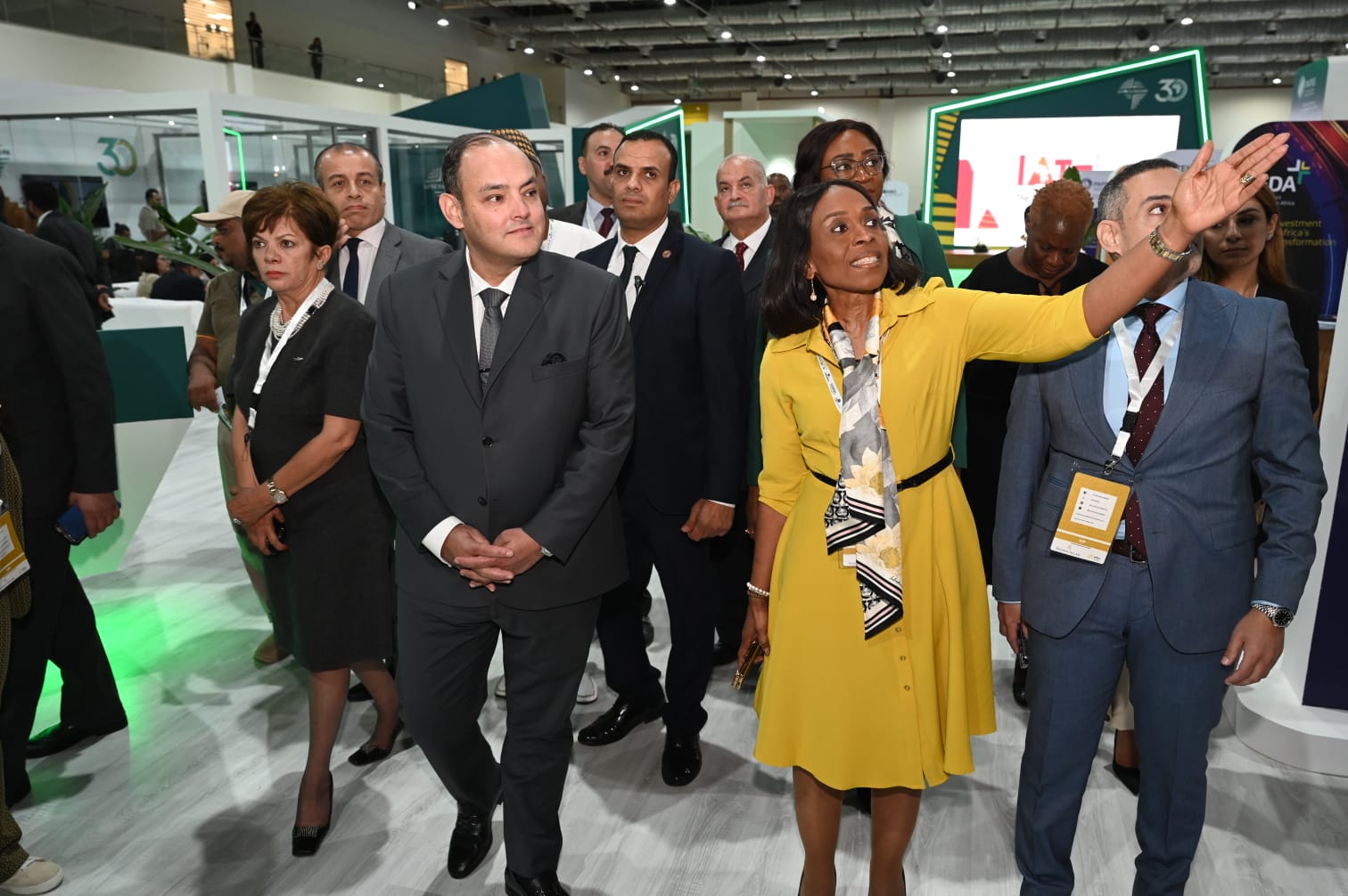 تفقد المهندس أحمد سمير وزير التجارة والصناعة أجنحة المعرض الإفريقي للتجارة البينية برفقة كانايو أواني، نائب رئيس البنك الإفريقي للتصدير والاستيراد "أفريكسيم بنك"، ومي عسل رئيس الهيئة المصرية للمعارض والمؤتمرات، وأيمن الزغبي مدير إدارة الاستثمارات بالبنك.