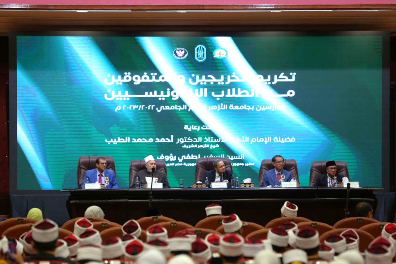 واصل علماء الأزهر الشريف وقيادات السفارة الإندونيسية بالقاهرة تكريم الخريجين والمتفوقين من الطلاب الإندونيسيين خريجي الأزهر الشريف، وأعرب الدكتور لطفي رؤوف، سفير إندونيسيا في مصر، عن بالغ تقديره للأزهر الشريف وإمامه الأكبر؛ لحسن عنايتهم بالوافدين