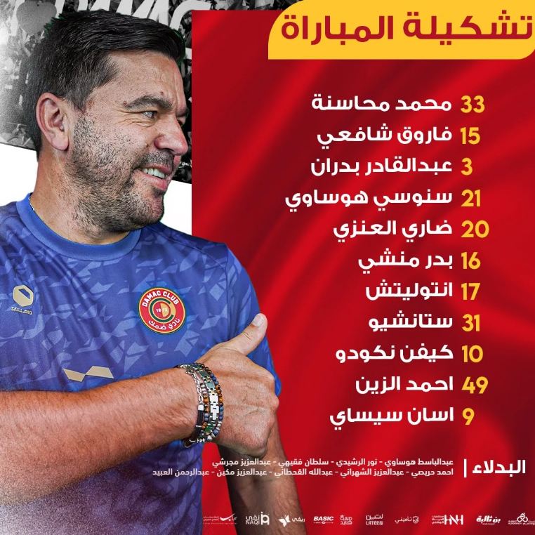 خط الدفاع: خالد ناري - عبده خبراني - آل حمسل - لوبيز - ريبوتشو.