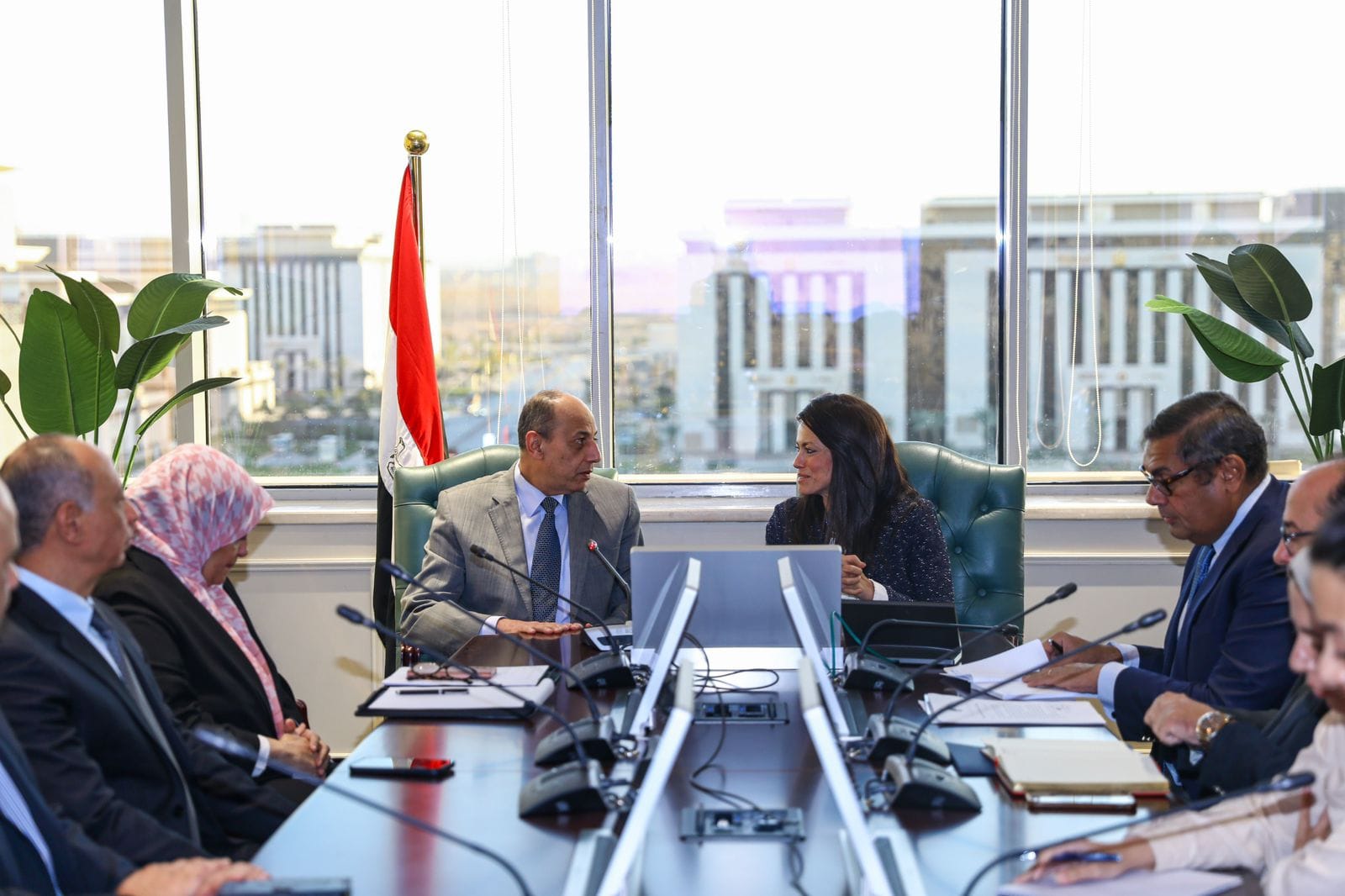 عقدت الدكتورة رانيا المشاط وزيرة التعاون الدولي، والفريق محمد عباس حلمي وزير الطيران المدني، اجتماعًا بمقر وزارة التعاون الدولي بالعاصمة الإدارية الجديدة، بحضور قيادات ومسئولي الوزارتين، وذلك في ضوء التنسيق بين الوزارتين لبحث سبل تعزيز الشراكات الدولية لدعم رؤية الدولة المصرية لتطوير وزيادة السعة الاستيعابية للمطارات المصرية، وكذلك تطوير المناطق المحيطة بالمطارات بما يعزز الاستثمارات ويدعم رؤية التنمية في الدولة.