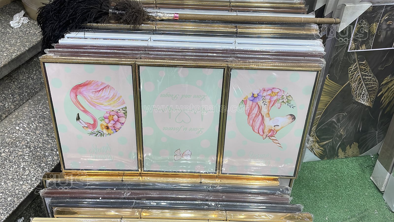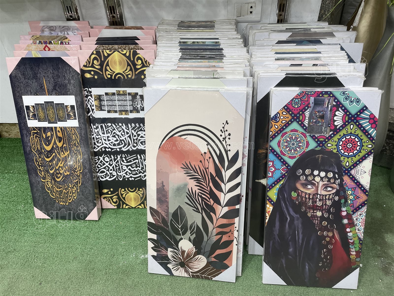 ويوجد أيضا لوحات بورتريه مكونة من ثلاث قطع بسعر 250 جنيهًا للحجم الكبير و150 للحجم المتوسط و100 جنيه للوحات المصنوعة من الخشب المصري.
