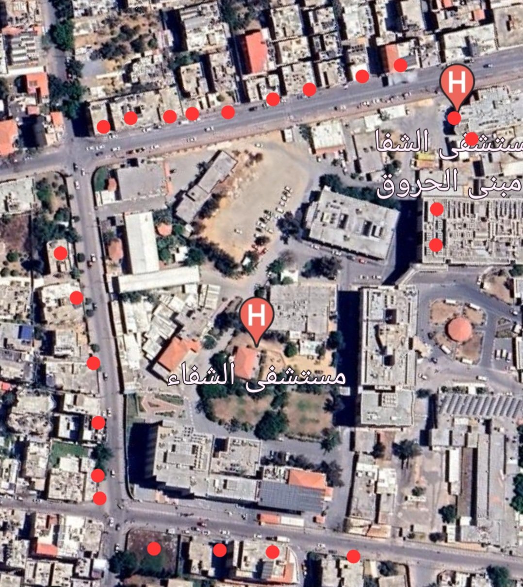 وكانت إسرائيل قد كثفت خلال الساعات الماضية ضرباتها على محيط 3 مستشفيات (الشفاء والرنتيسي والإندونيسي) بغية إفراغ تلك المناطق في مدينة غزة من المدنيين الفلسطينيين الذين لجأوا منذ أسابيع إلى باحات المستشفيات للاحتماء من القصف.