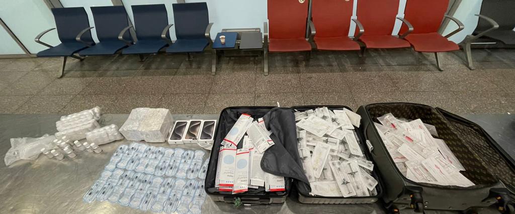 وتمكن رجال الإدارة الأولى بقيادة مصطفى حلمي الجندي مدير الإدارة، ومحمود عبد النبي عباس نائب المدير، بتحرير محضر ضبط جمركي رقم ١٢٢ لسنة ٢٠٢٣ ضد راكب مصري قادم من دبي على رحلة الخطوط الإماراتية حاول تهريب ٢٣٩ عبوة دوائية خاصة بالتجميل و3 هواتف محمولة، وتم الضبط بواسطة كل من وليد جمال حسن مأمور اللجنة الجمركية، وجورج صفوت مأمور الجمرك، في التفتيش اليدوي ومن ادارة الفحص بالأشعة أسامة عبد العزيز وفرج حمدي رئيس القسم، وشارك في الضبط كل من محمد جمال ومروان محمود ومصطفى حامد وخالد حسام وأحمد فؤاد وحافظ منشاوي رئيس القسم، في حضور محمد حنفي من إدارة الأمن الجمركي، تحت إشراف عمرو العميري مدير الحركة المشرف على صالة الوصول بمبني الركاب رقم ٢.