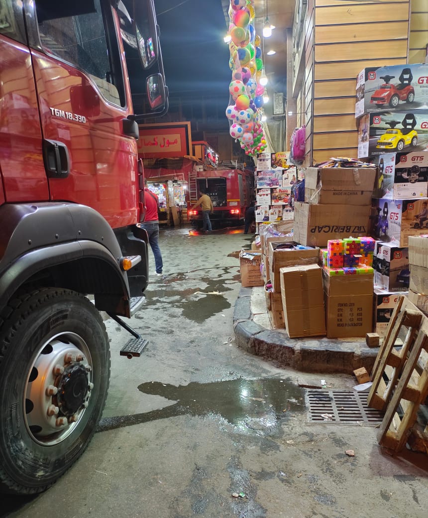 وتبين نشوب حريق في مخزن لألعاب الأطفال وأتت النيران علي محتويات المخزن بسبب وجود مواد بلاستيكية ساعدت علي سرعة اشتعال الحريق،وجري السيطرة على الحريق قبل امتداده الي باقي المحلات والمخازن المجاورة، وانتداب خبراء الأدلة الجنائية لمعرفة أسباب الحريق.