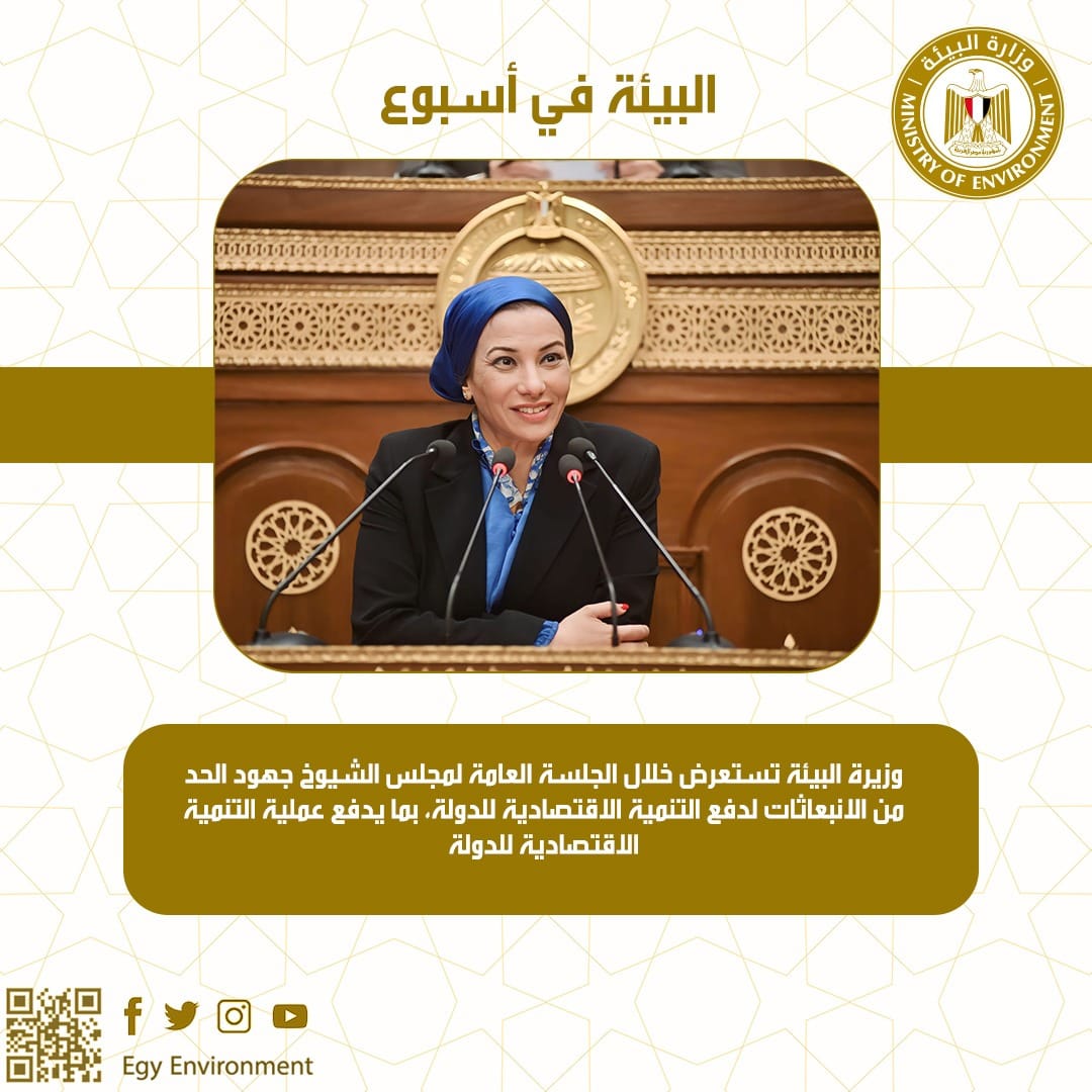 وزيرة البيئة تستعرض خلال الجلسة العامة للشيوخ جهود الحد من الانبعاثات