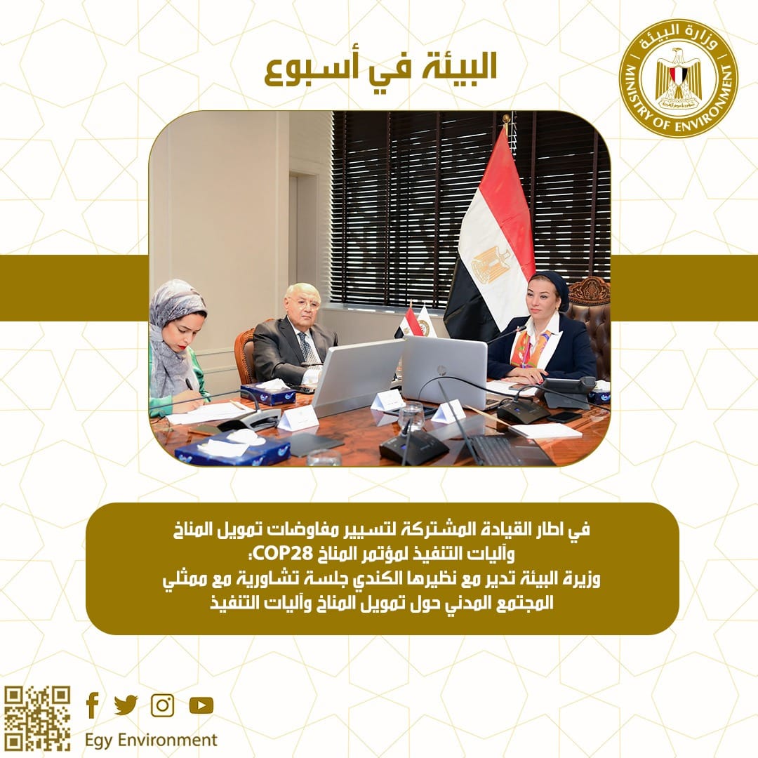 " وزيرة البيئة تدير مع نظيرها الكندي جلسة تشاورية مع ممثلي المجتمع المدني حول تمويل المناخ وآليات التنفيذ"