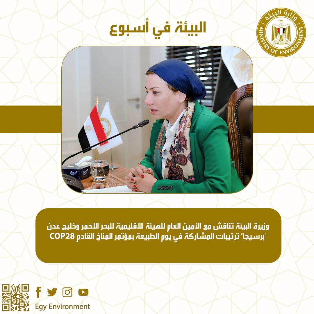 - الدكتورة ياسمين فؤاد وزيرة البيئة ورئيس الدورة الـ٢٠ للمجلس الوزاري للهيئة الإقليمية للبحر الأحمر وخليج عدن "برسيجا" تجتمع مع الدكتور زياد أبو غرارة الأمين العام للهيئة، عبر خاصية الفيديو كونفرانس، وذلك لمناقشة آخر مستجدات خارطة الطريق للهيئة وترتيبات المشاركة في يوم الطبيعة بمؤتمر المناخ القادم بالإمارات العربية COP28، حيث تم مناقشة عدد من المحاور ومنها، آخر مستجدات تنفيذ توصيات الاجتماع الأخير للمجلس الوزاري للهيئة الإقليمية للبحر الأحمر وخليج عدن، من ناحية الرؤية المستقبلية، والسيناريوهات ومساهمات الدول الأعضاء، وتعزيز التعاون الإقليمي فيما يخص مواجهة حوادث التلوث الزيتي، إلى جانب تطورات حشد التمويل، والمشاركة في اليوم الخاص بالطبيعة بمؤتمر المناخ القادم COP28 في ضوء التنسيق مع الجانب الإماراتي، والانشطة التي يمكن تنفيذها خلال المؤتمر لإظهار دور الهيئة وتوحيد الجهود الإقليمية في حماية البيئة البحرية والتنوع البيولوجي.