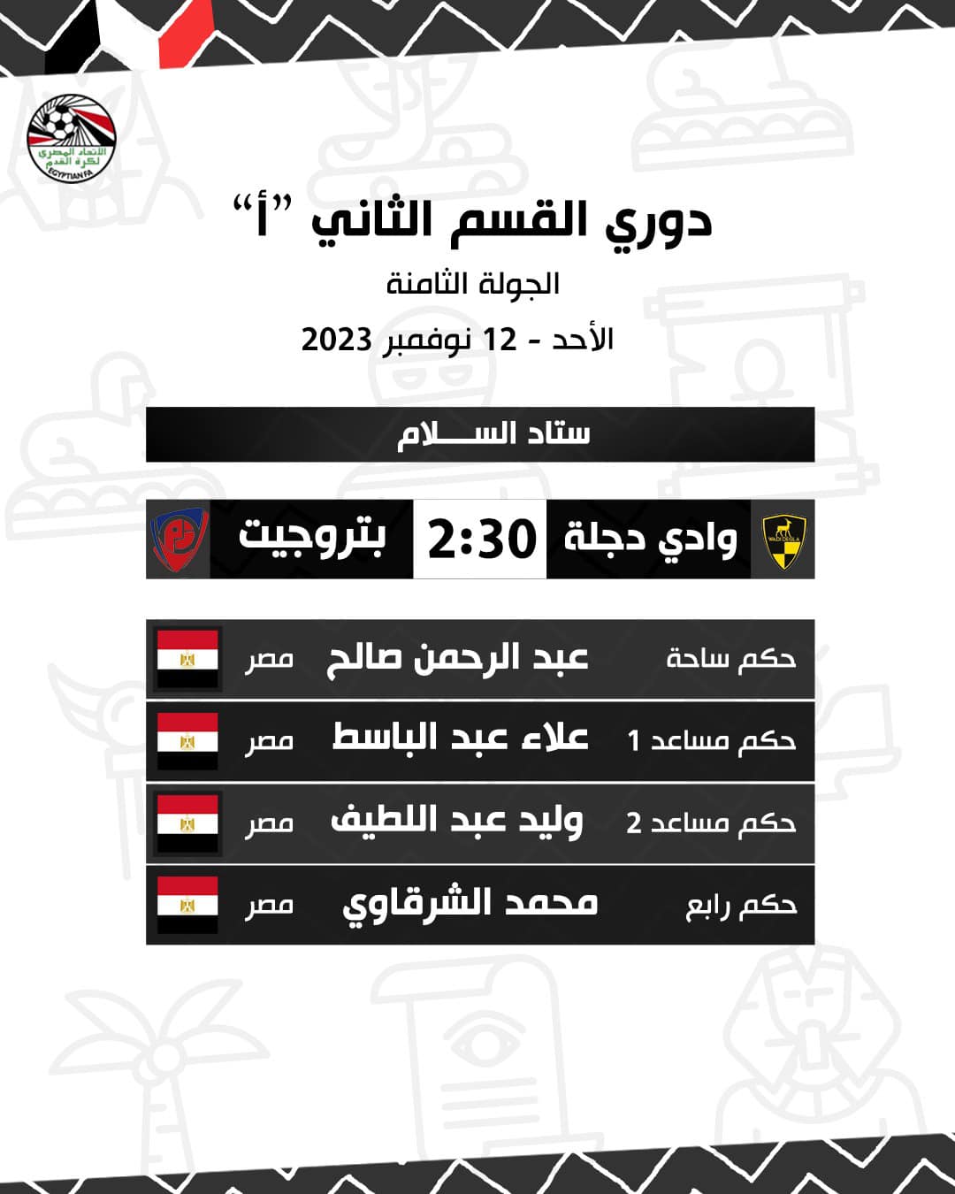 دوري المحترفين، يستضيف وادي دجلة نظيره بتروجت في مباراة قوية اليوم الأحد في افتتاح الجولة الثامنة لمسابقة دوري المحترفين “دوري القسم الثاني أ”.