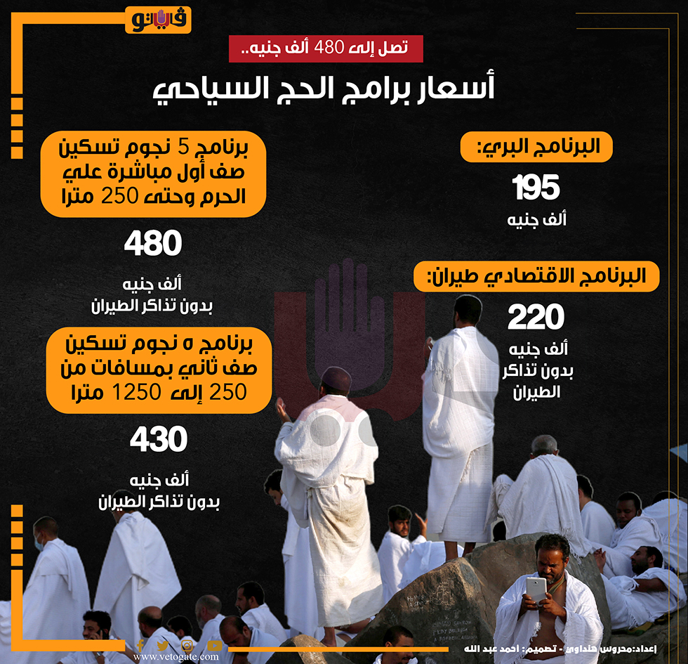 تصل إلى 480 ألف جنيه.. أسعار برامج الحج السياحي (انفوجراف) الإثنين 13/نوفمبر/2023 - 10:27 ص 11/13/2023 10:27:10 AM مناسك الحج، فيتو محروس هنداوي شارك طباعة 18 حجم الخط شارك طباعة الحج مناسك الحج الحج السياحى أسعار برامج الحج السياحي اللجنة العليا للحج والعمرة وزارة السياحة والآثار