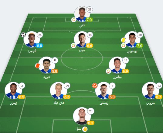 وحصل داوود لاعب برايتون علي بطاقة حمراء في الدقيقة 69.