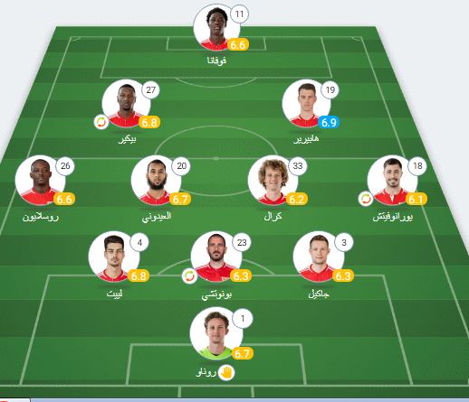 خط الوسط: يورانوفيتش، كرال، العيدوني، روسلايون