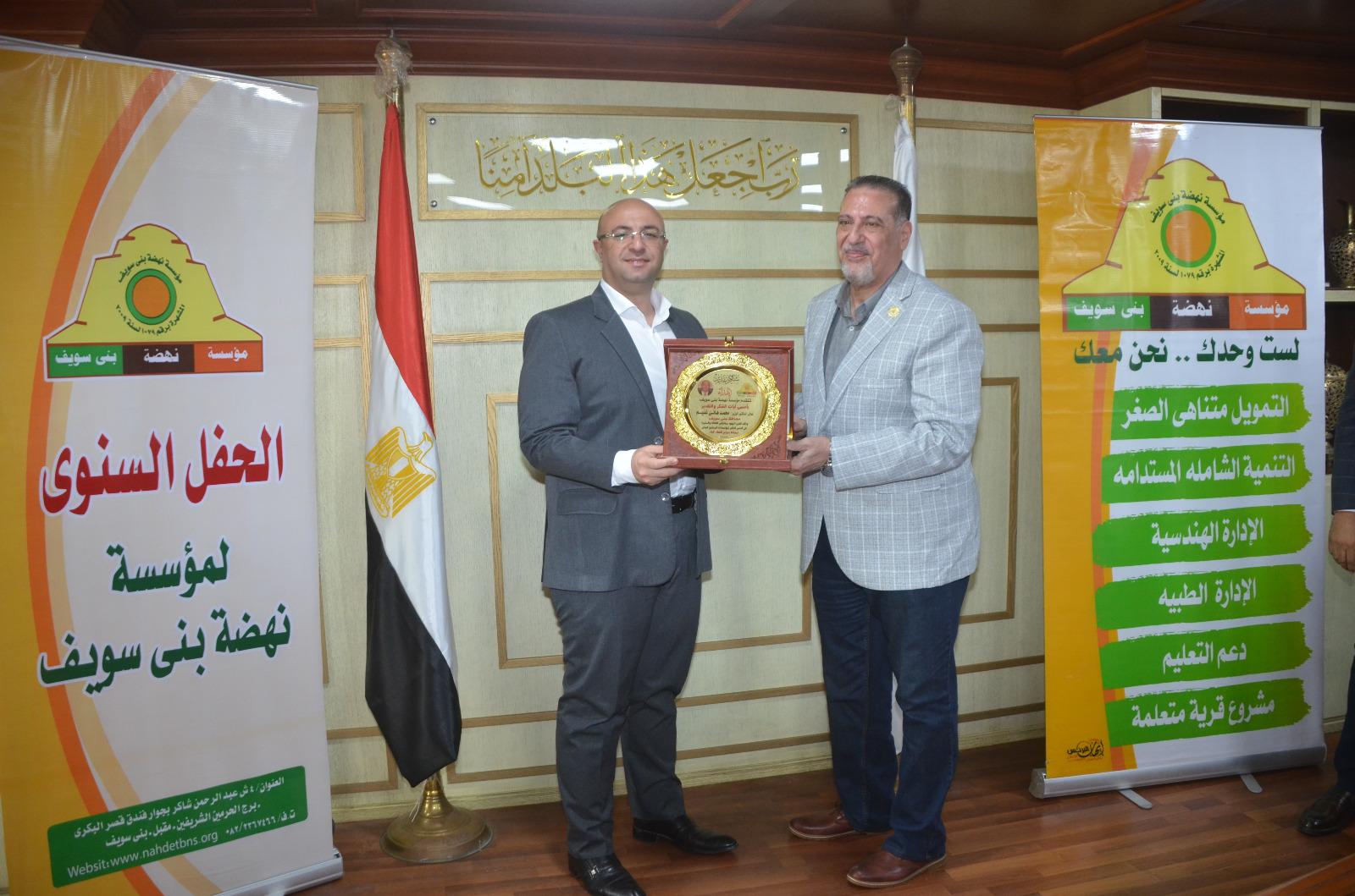 جاء ذلك خلال الاحتفالية التي نظمتها المؤسسة، اليوم، بالتعاون مع محافظة بني سويف، بحضور الدكتور محمد هاني غنيم محافظ بني سويف، والدكتور أشرف فاروق عويس نائب رئيس مجلس أمناء مؤسسة نهضة بني سويف، والمحاسب وليد حسين المدير التنفيذي للمؤسسة، وممثلي الجمعيات الأهلية الشريكة مع المؤسسة.