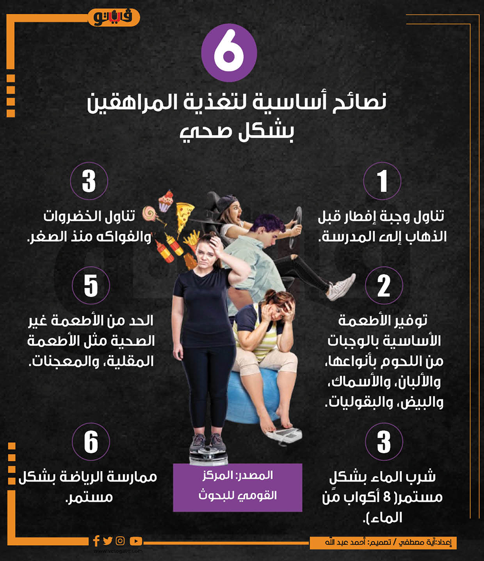 6 نصائح أساسية لتغذية المراهقين بشكل صحي (إنفوجراف)