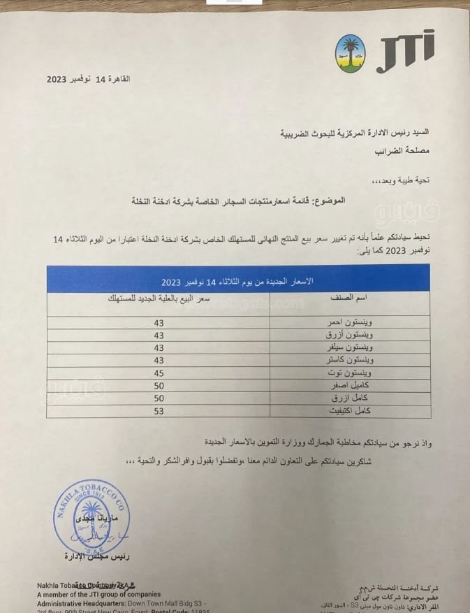أسعار السجائر، أعلنت شركة JTI اليابانية "جابان توباكو"، زيادة أسعار سجائر وينستون وكاميل والتي يتم تطبيقها من اليوم الثلاثاء.