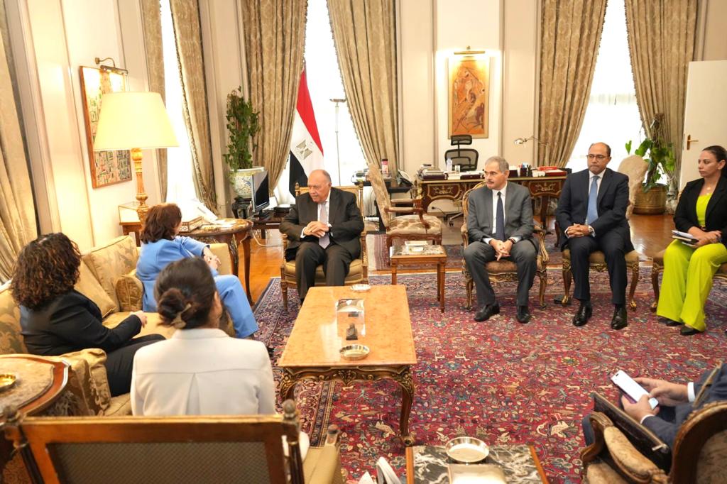 وذكر المتحدث الرسمي للخارجية، أن المناقشات بين الوزير شكري والمديرة التنفيذية الأممية ركزت على مسارات العمل المشتركة للحد من الأوضاع الإنسانية المتردية في قطاع غزة، وما يتعرض له المدنيون الفلسطينيون بما في ذلك الأطفال والنساء من اعتداءات إسرائيلية جسيمة تخالف أحكام القانون الدولي والقانون الدولي الإنساني. وقد أكد وزير الخارجية للمسئولة الأممية على أن الانتهاكات الإسرائيلية في حق المدنيين الفلسطينيين، لاسيما النساء والأطفال، ترقى لكونها جرائم حرب مكتملة الأركان، مشددًا على ضرورة الوقف الفوري لإطلاق النار، وإيصال المساعدات الإنسانية والإغاثية للقطاع بشكل كامل ومستدام وآمن.