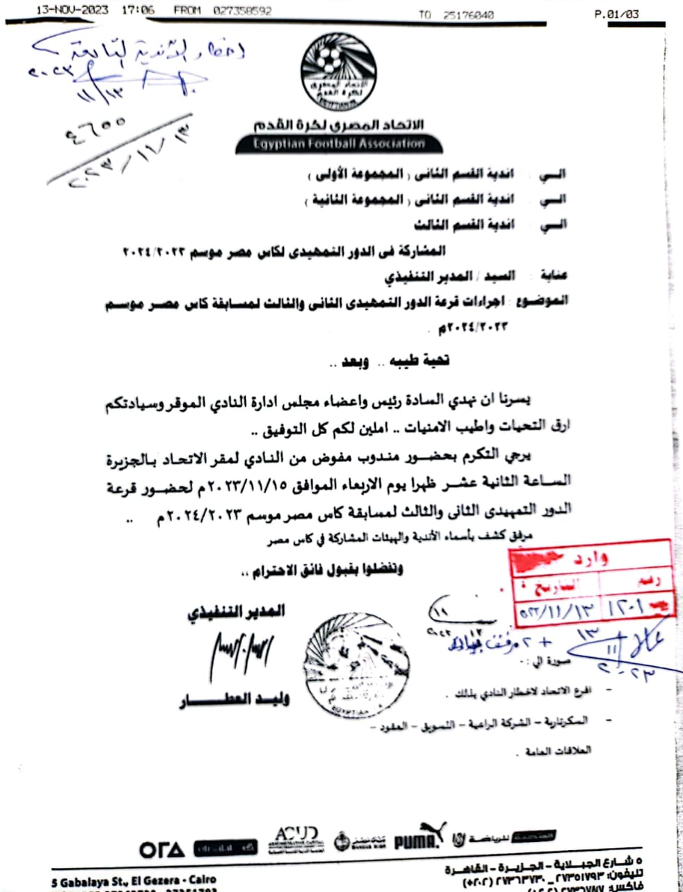 أرسل اتحاد الكرة المصري خطابات رسمية للأندية بمواعيد قرعة الدور التمهيدي الثاني والثالث لبطولة كأس مصر بمشاركة أندية دوري المحترفين.