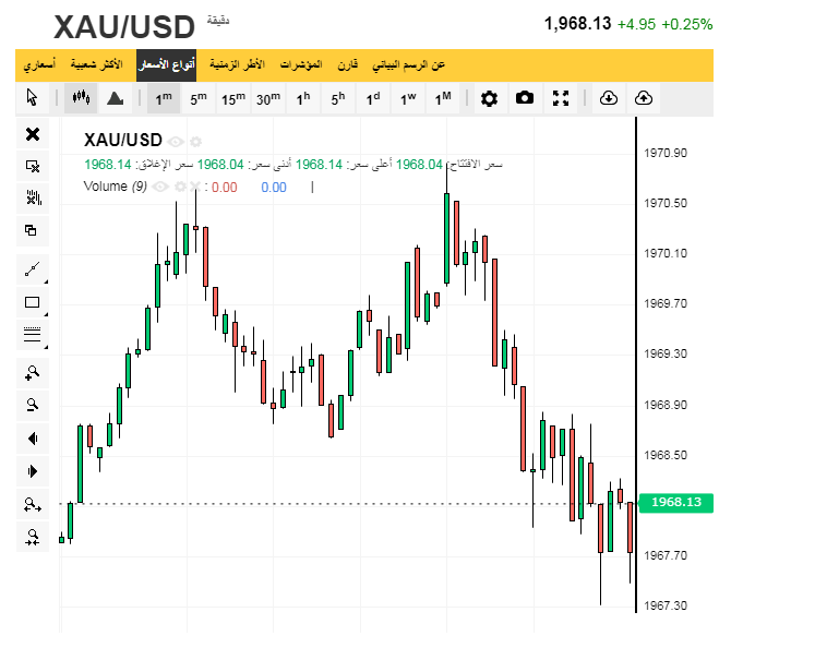 وتجاوز سعر الأونصة الواحدة 1968 دولارا، وهو نتيجة التغيرات والأحداث الجيوسياسية العالمية والتى تؤثر بدورها على أسعار الذهب والنفط وهو ما أدى إلى ارتفاع أسعار الذهب بحركة التعاملات، وانخفض العائد على سندات الخزانة الأمريكية لأجل 10 سنوات اليوم، بنسبة 0.1% إلى 4.93%، بعد أن تجاوز مستوى 5% للمرة الأولى منذ عام 2007.