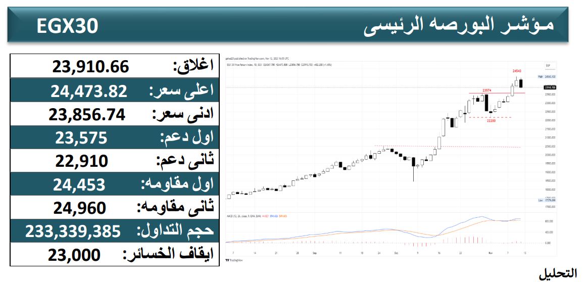 التحليل الفني اليومي لمؤشرات البورصة المصرية اليوم الخميس 16-11-2023