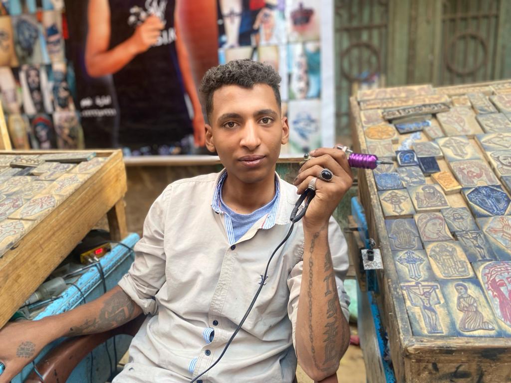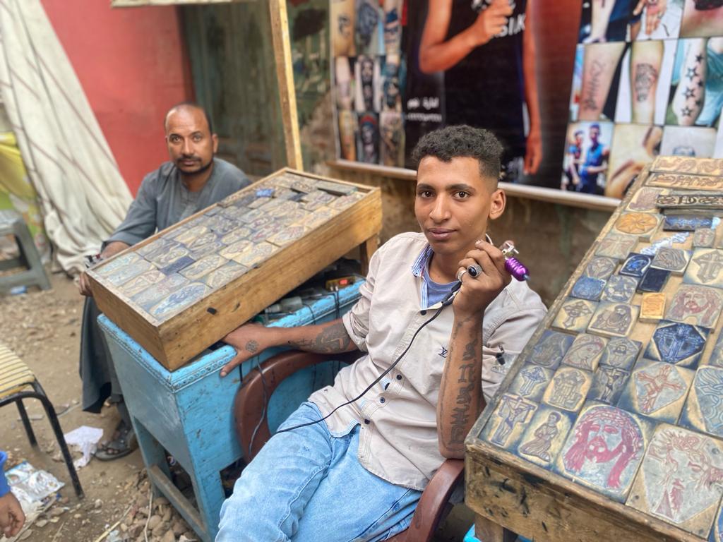 أسعارها تصل لـ 300 جنيه.. أقباط المنيا يدقون الصلبان ويوشمون القديسين على أجسادهم.. عوبيد نجم: ورثت المهنة عن والدي.. الأحبار أمريكية والمخدر موضعي (فيديو وصور)