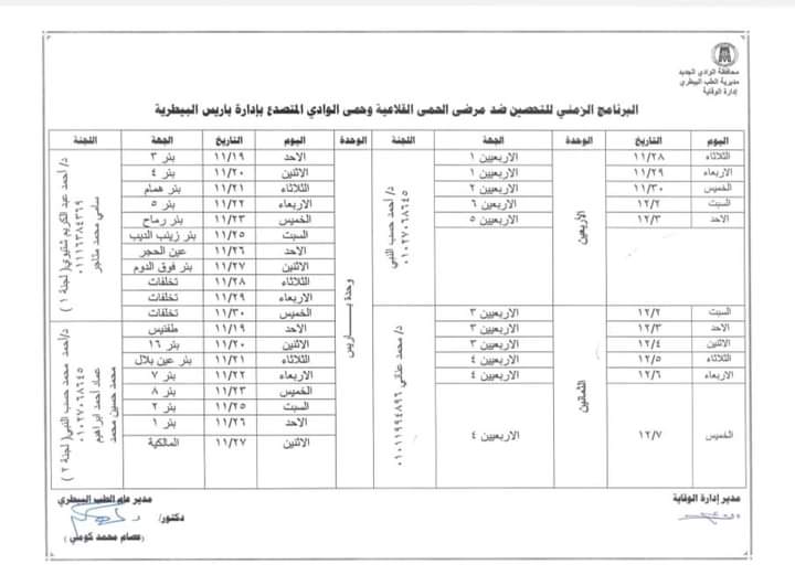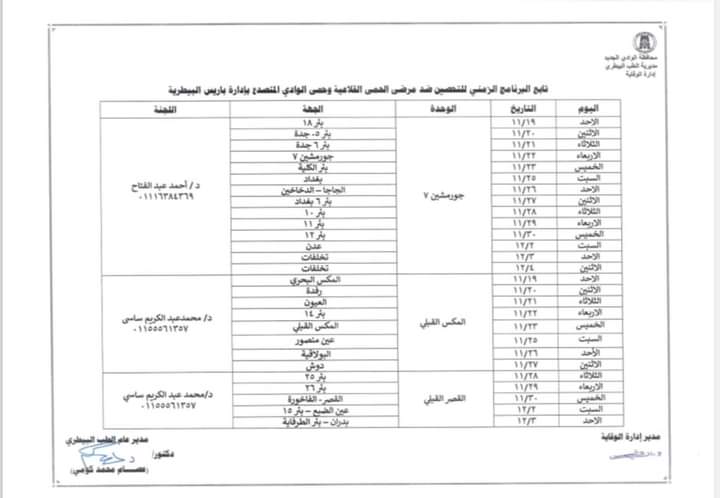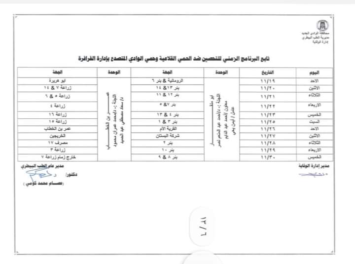 وأكد الدكتور عصام الكومي، مدير عام مديرية الطب البيطري بالوادي الجديد، أنه تم ضع جدول زمني للتحصينات بالقرى والمدن من خلال فرق التحصين بالوحدات البيطرية التابعة للإدارات البيطرية بمراكز المحافظة الإدارية الخمسة، وكذلك الفرق المتحركة، وتم توفير الأمصال والأدوية من الهيئة العامة للخدمات البيطرية لضمان تحصين الماشية من الأبقار والأغنام والماعز والحفاظ على الثروة الحيوانية.