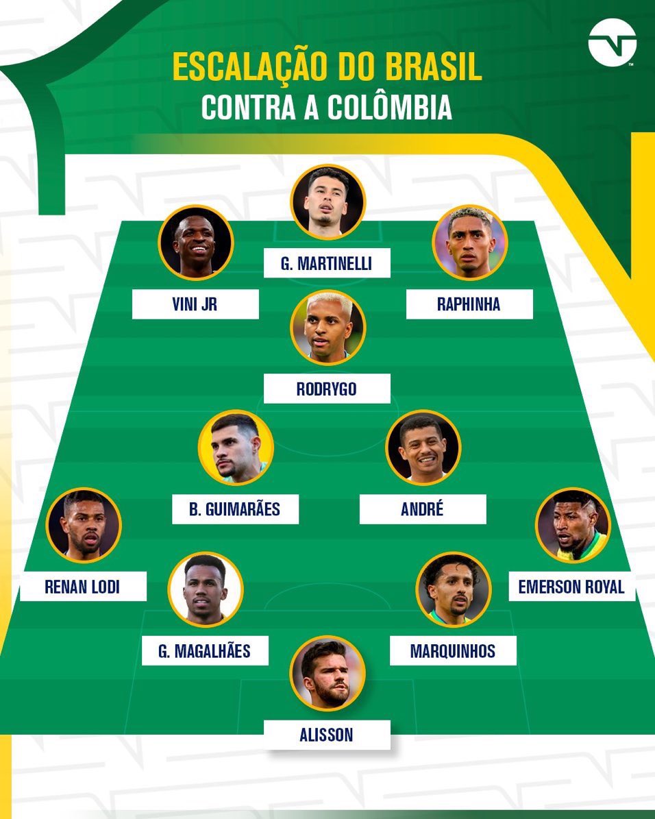 دياز أساسيا، التشكيل الرسمي لمباراة كولومبيا ضد البرازيل في تصفيات كأس العالم
