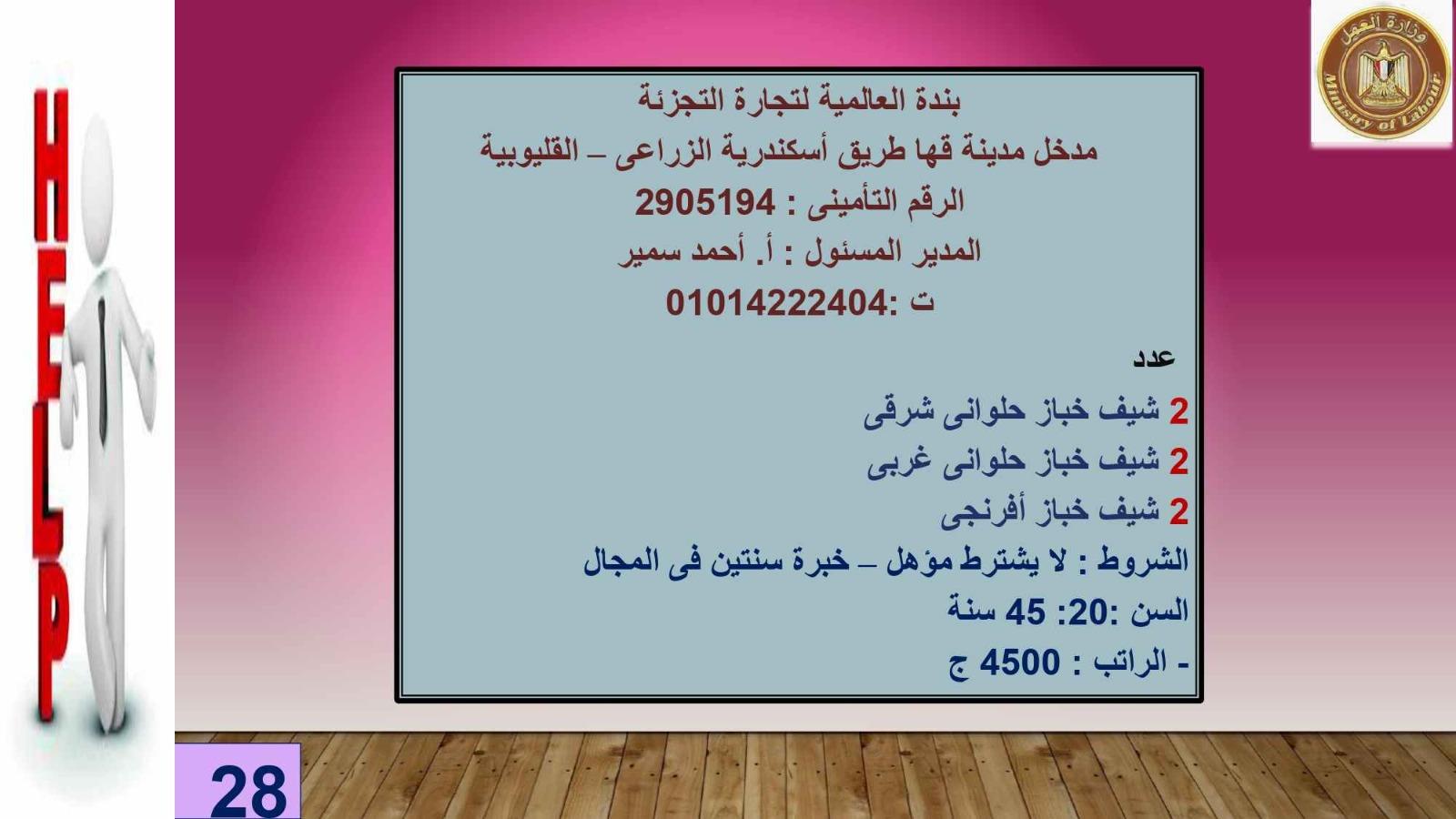 وتضم النشرة مجموعة من الوظائف لذوى همم بالمحافظات، وذلك لاستيفاء نسبة الـ 5 % من بين إجمالي عمالها من تلك الفئة، برواتب مجزية، وذلك فى إطار تنفيذ خطة الوزارة لرعاية وتدريب وتشغيل ذوي الهمم خلال الفترة الحالية، وإلزام المنشآت بتشغيل 5% من إجمالي عمالها من ذوى القدرات الخاصة تنفيذًا للقانون رقم 10 لسنة 2018، ولتوجيهات الرئيس عبد الفتاح السيسي رئيس الجمهورية بدمجهم في سوق العمل.