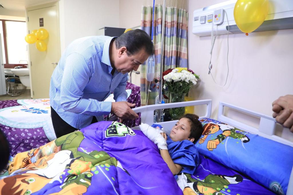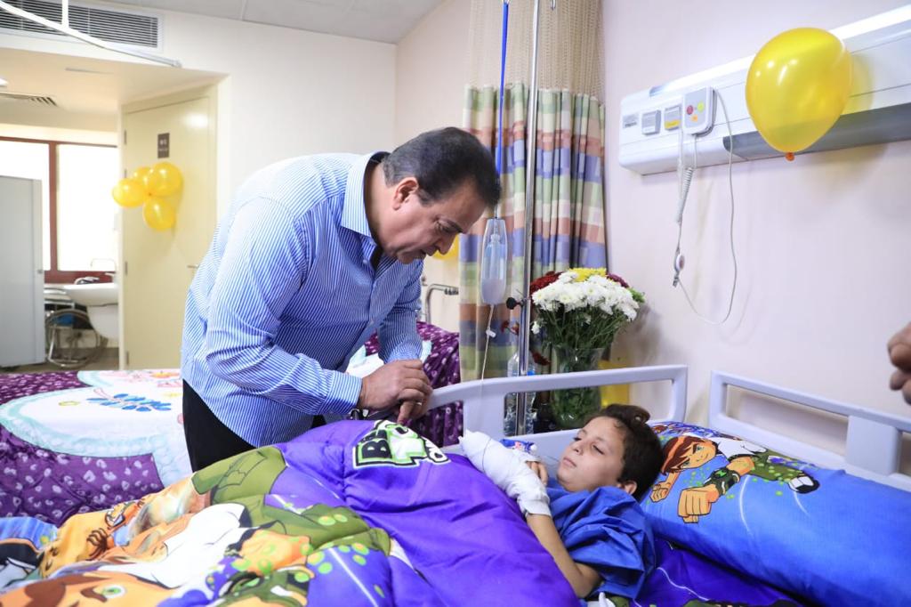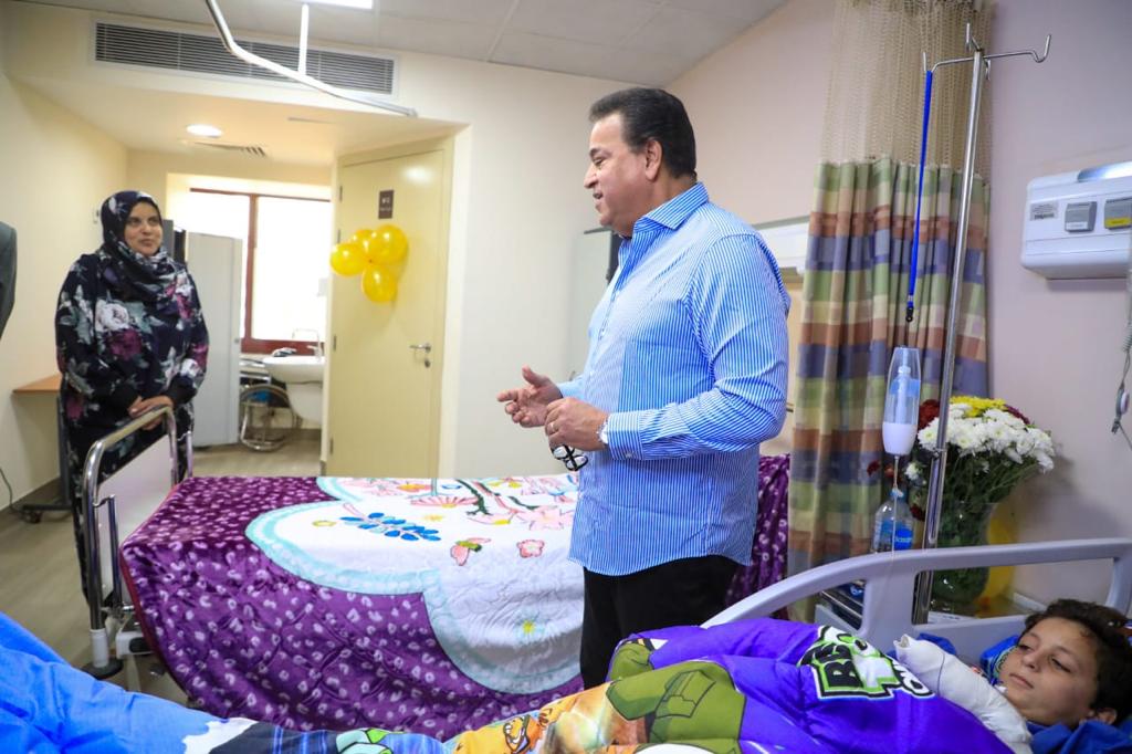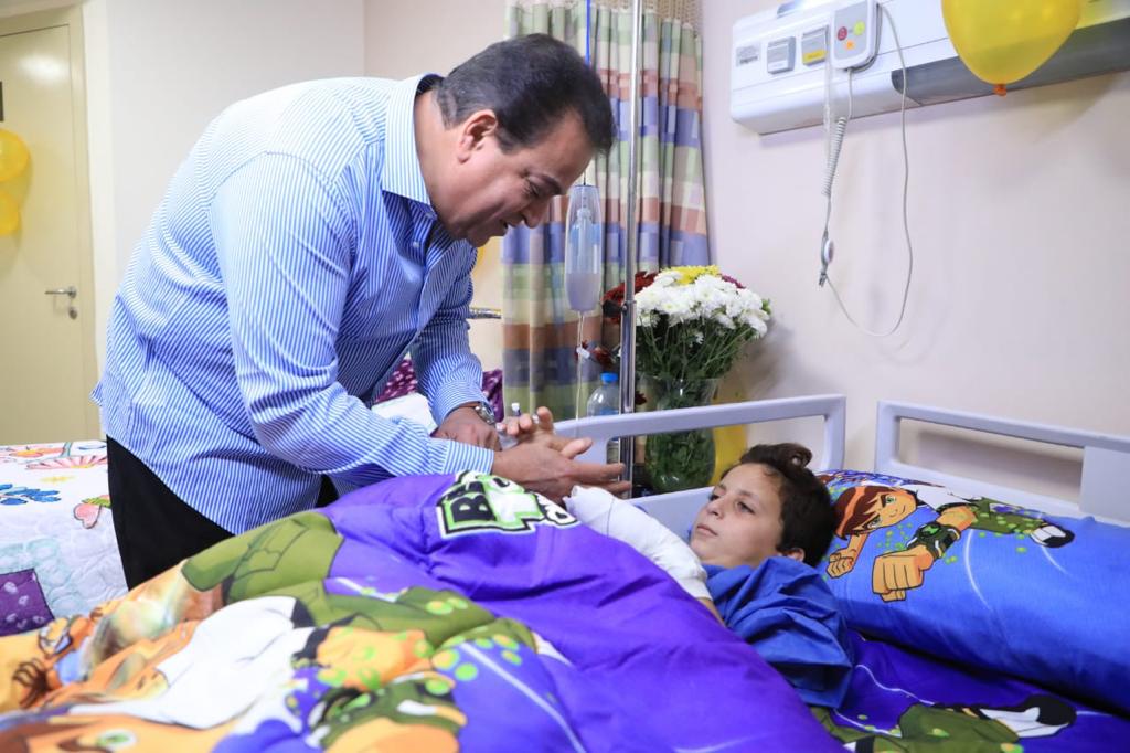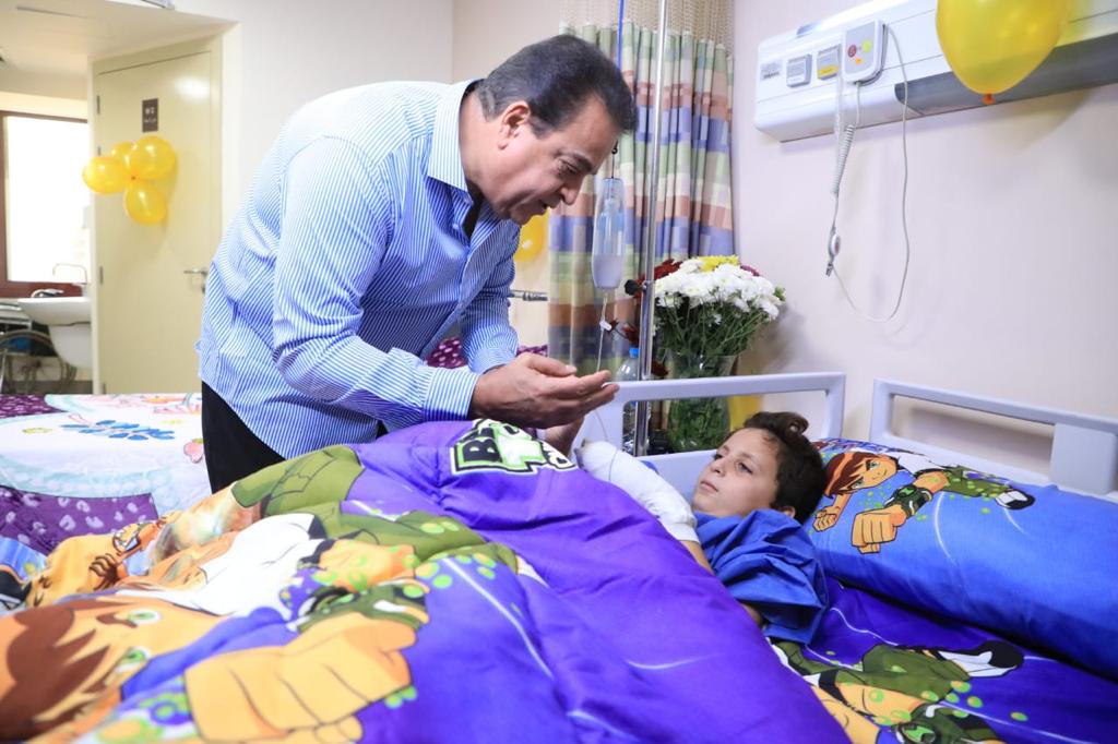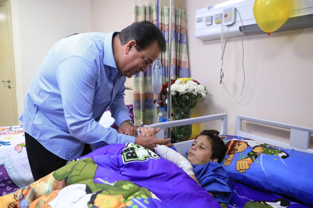 وزير الصحة يطمئن على الطفل الفلسطيني عبد الله الكحيل بمعهد ناصر (صور)