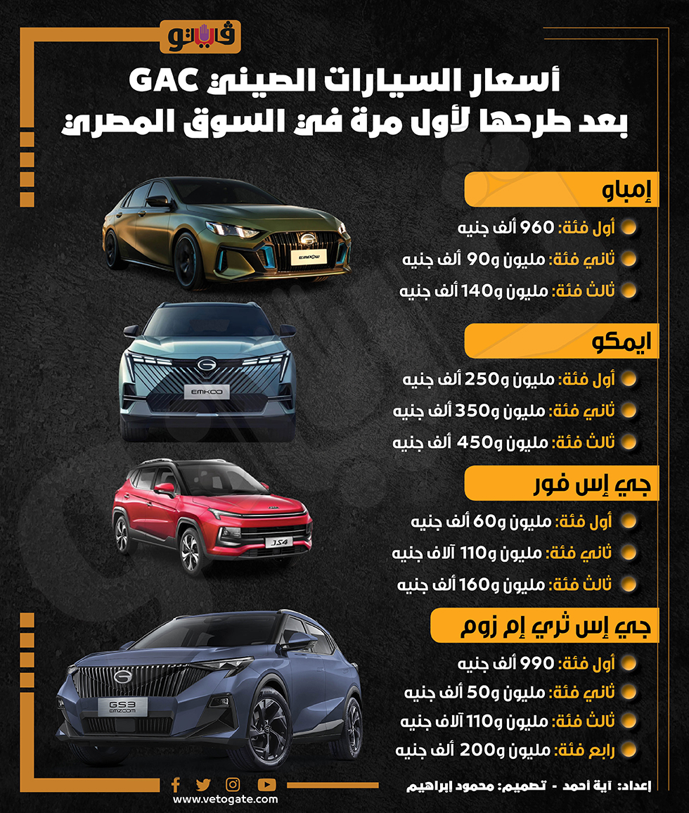 أسعار السيارات الصيني GAC بعد طرحها لأول مرة في السوق المصري (انفوجراف) السبت 18/نوفمبر/2023 - 01:55 م 11/18/2023 1:55:25 PM GAC آية أحمد شارك طباعة 18 حجم الخط شارك طباعة اسعار السيارات السيارات الصيني السوق المصرى السيارات الصينية سعار السيارات الصينية