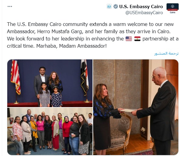 اقرأ أيضًا: من أصول عراقية، هيرو مصطفى تؤدي اليمين سفيرة للولايات المتحدة في مصر