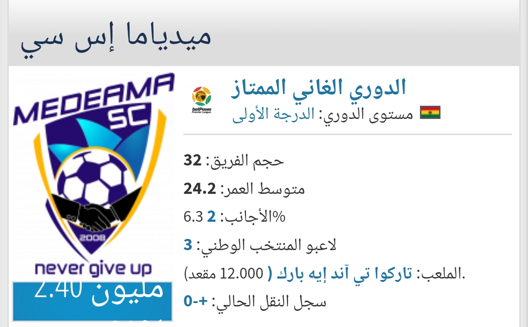 وفي التقرير التالي نعرض لكم معلومات هامة عن فريق ميدياما الغاني:
