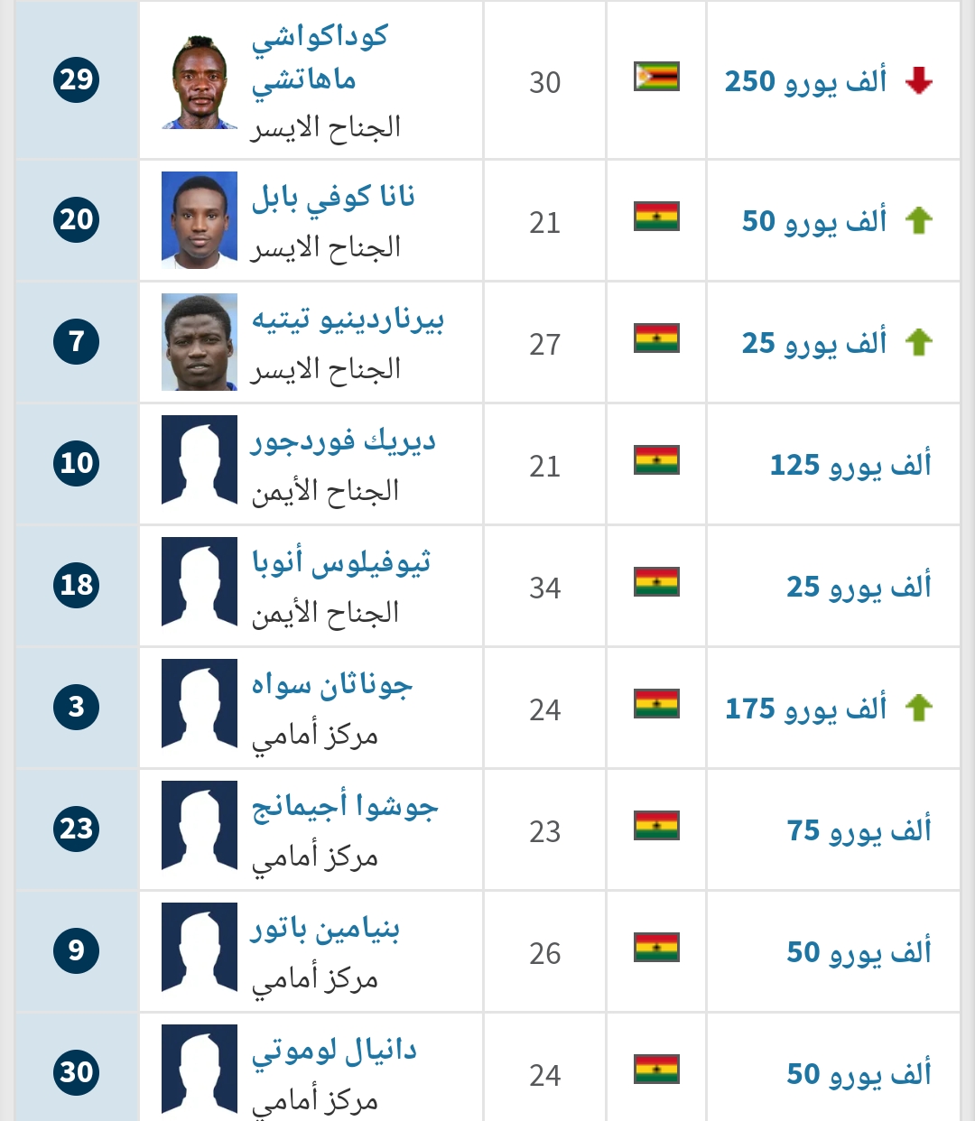 - اللاعب الاعلي قيمة الزيمبابوي ماهاتشي 250 ألف يورو.