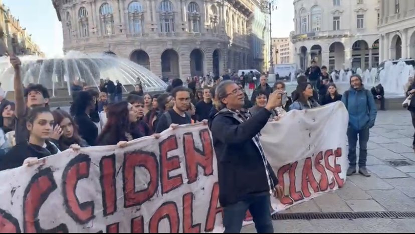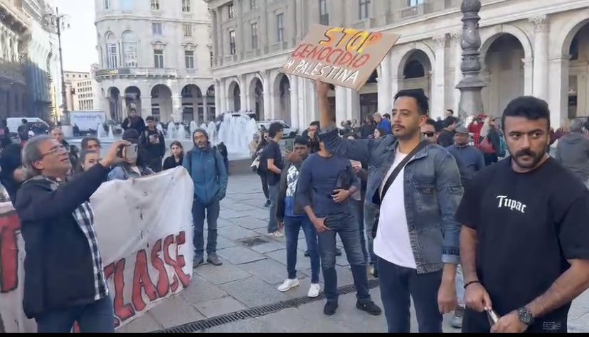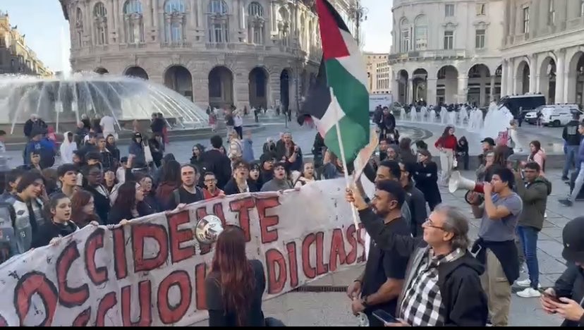 وشارك خالد يوسف وأحمد العوضي بالهتافات مع المتظاهرين في إيطاليا، كما قام “خالد” برفع العلم الفلسطيني.