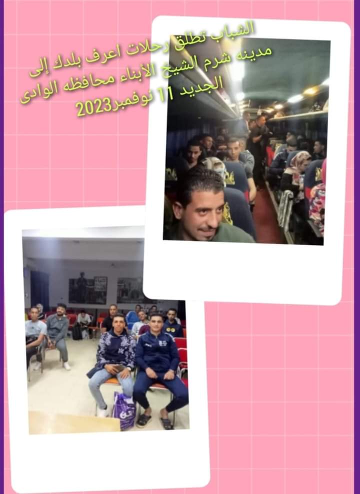 أطلقت الشباب والرياضه رحلات اعرف بلدك إلى مدينه شرم الشيخ الأبناء محافظه الوادى الجديد الموافق 11 من نوفمبر 2023،، وشملت ندوه عن صحه المراه بمركز شباب غرب الموهوب بقطاع الداخله 11نوفمبر 2023.