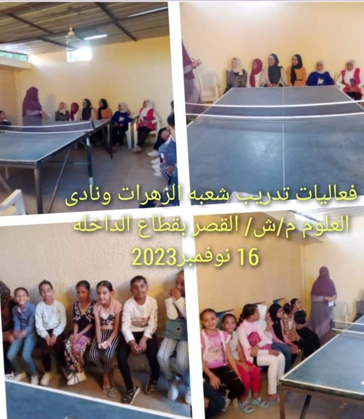 فعاليات تدريب شعبه الزهرات ونادى العلوم بمركز شباب القصر بقطاع الداخله الموافق 16من نوفمبر 2023،